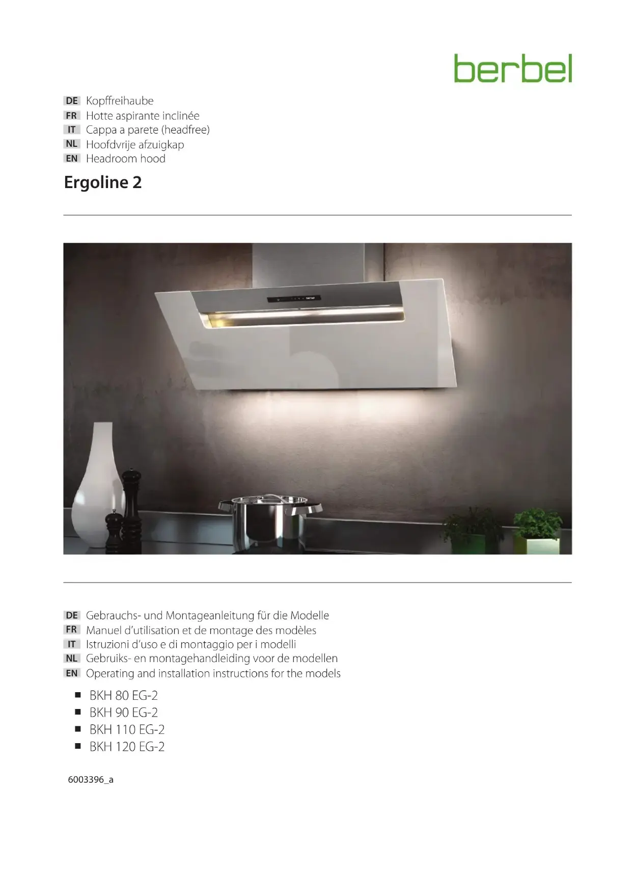 BKH 110 EG - Hotte aspirante BERBEL - Notice d'utilisation et mode d'emploi gratuit