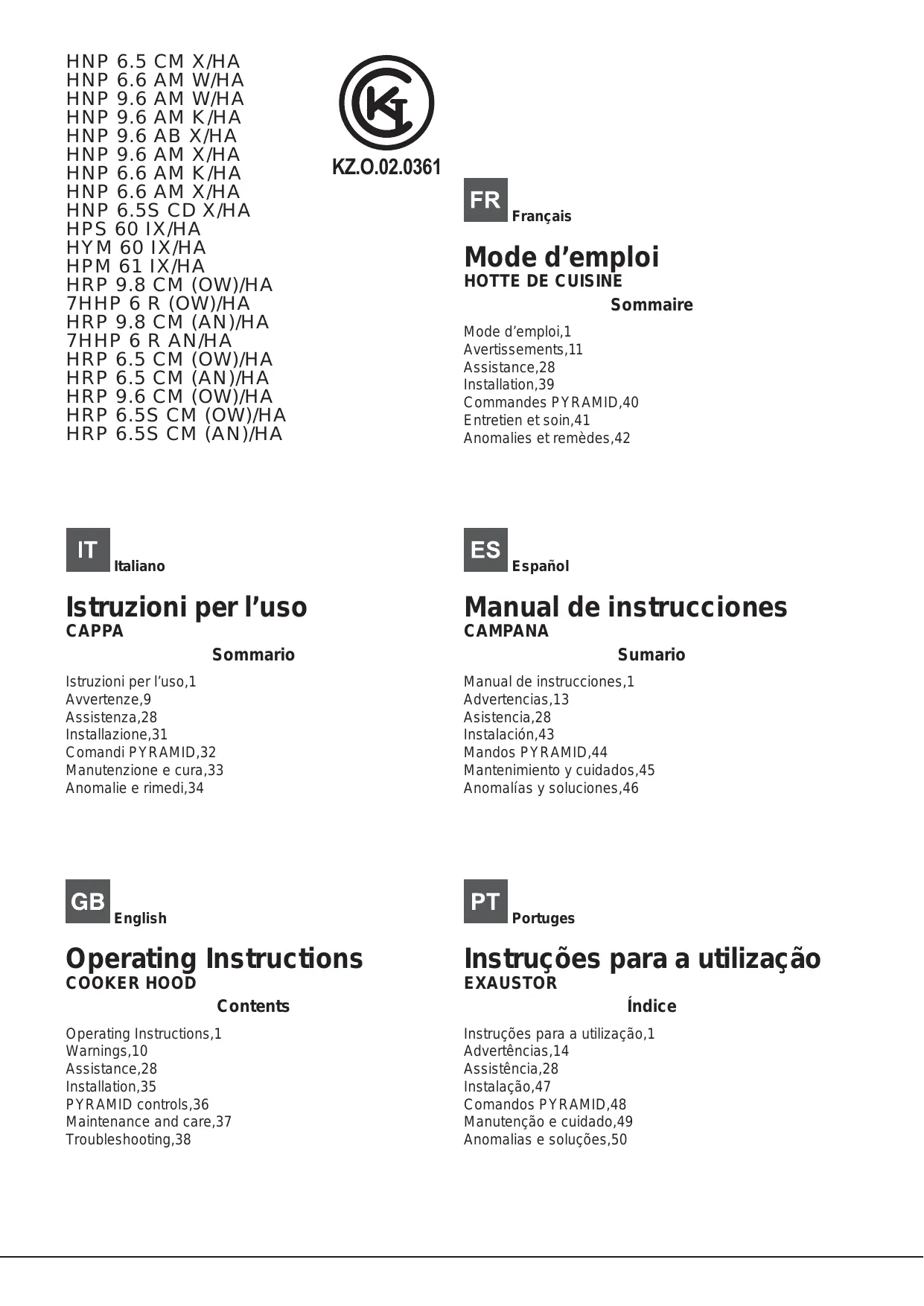 HAP 98 CM (aNyHA |Helegène| 2x25 300 Les hottes sont conformes aux Directives CE suivantes : + Directive « Basse tension » 2006/95/CE (12-12-2006) + Directive « Compatibilité électromagnétique » 2004/108/CE (15-12-2004) Commandes PYRAMID Modèles avec clavier mécanique