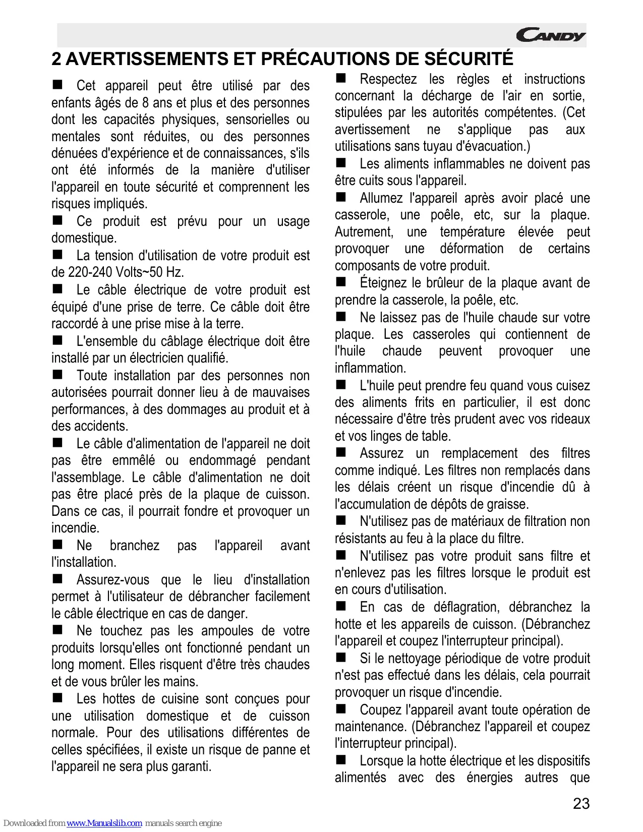 2 AVERTISSEMENTS ET PRECAUTIONS DE SECURITÉ 23
