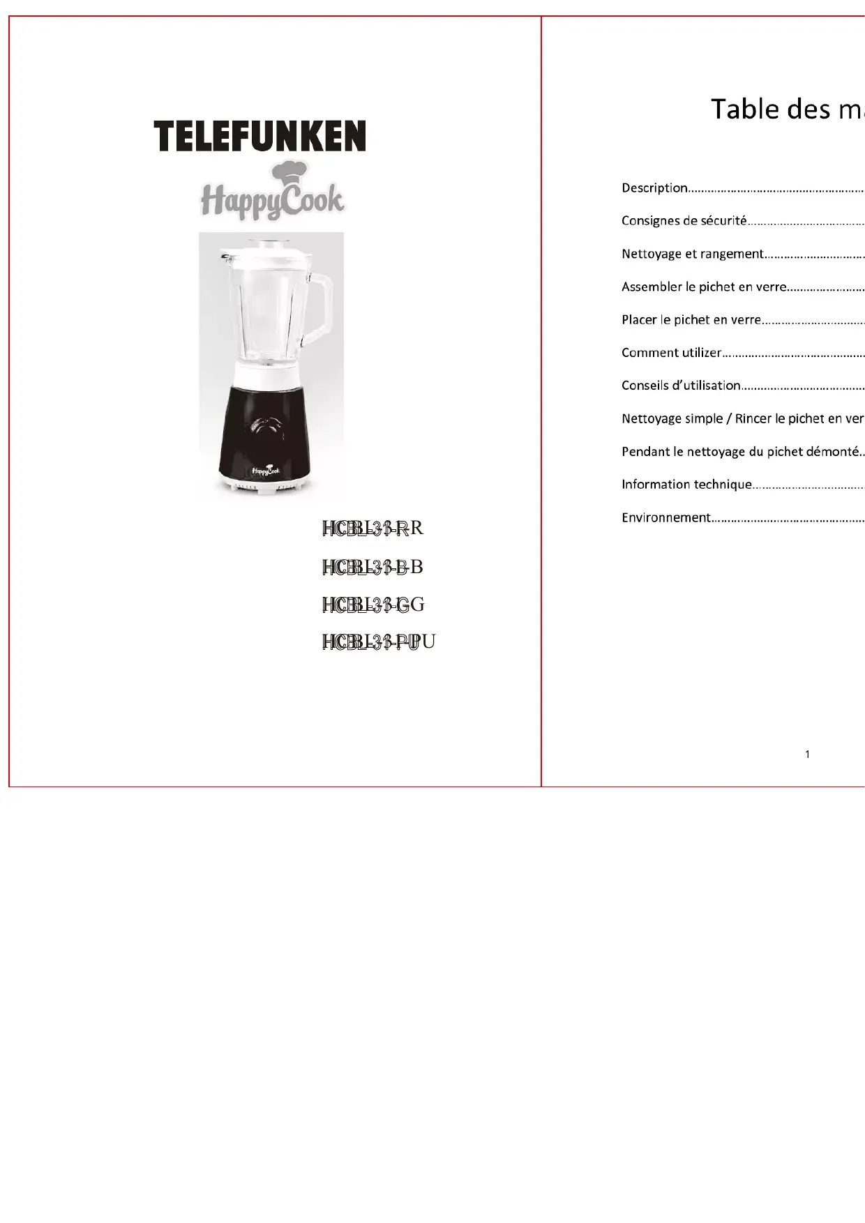 Téléchargez la notice de votre Blender au format PDF gratuitement ! Retrouvez votre notice HCBL-31 - TELEFUNKEN et reprennez votre appareil électronique en main. Sur cette page sont publiés tous les documents nécessaires à l'utilisation de votre appareil HCBL-31 de la marque TELEFUNKEN.