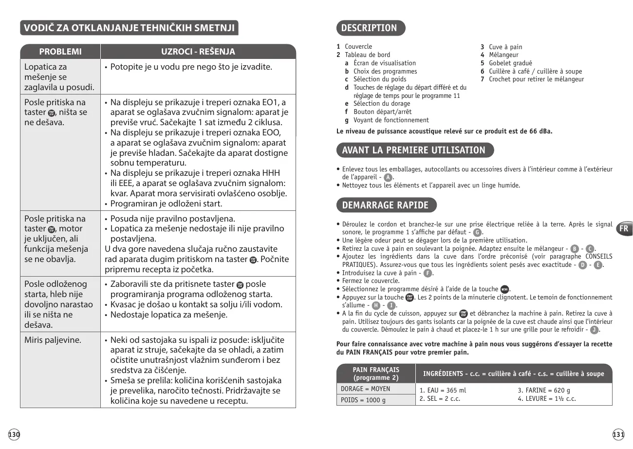 | Fonctions principales | Préparation de pain, pâtes, confitures, yaourts |
