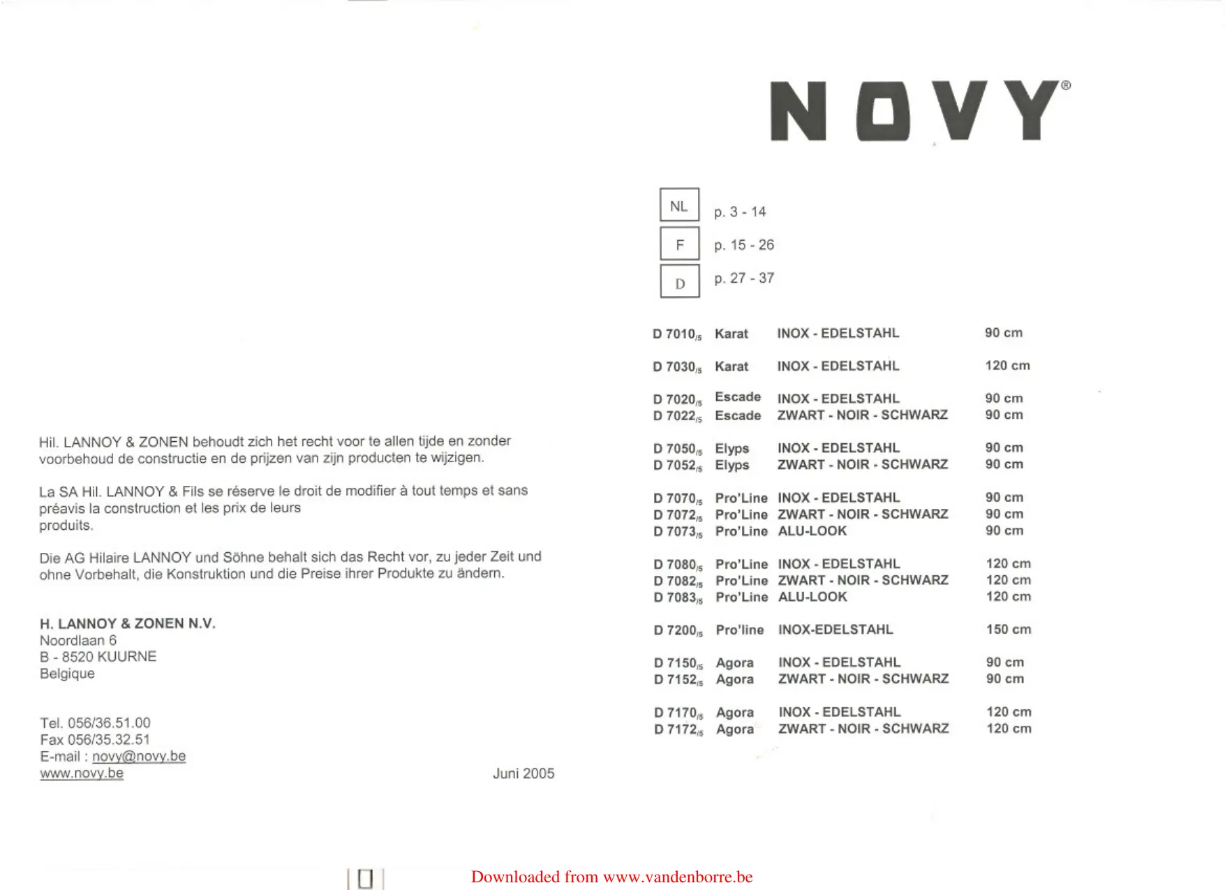 Retrouvez gratuitement la notice de l'appareil ELYPS 7050 - ELYPS 7052 NOVY au format PDF.