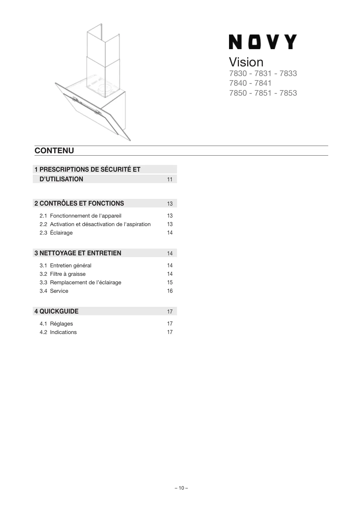 VISION 7848 - VISION 7850 - VISION 7858 - VISION FULL - Hotte aspirante NOVY - Notice d'utilisation et mode d'emploi gratuit