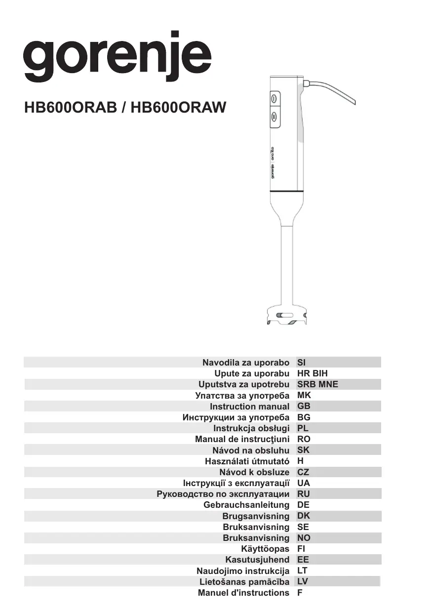 HB600ORAW - HB600ORAB - Mixeur plongeant GORENJE - Notice d'utilisation et mode d'emploi gratuit