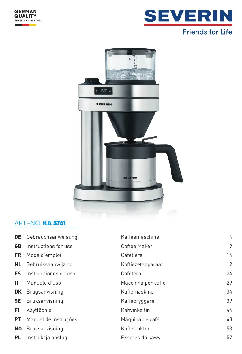KA 5761 - Cafetière SEVERIN - Notice d'utilisation et mode d'emploi gratuit
