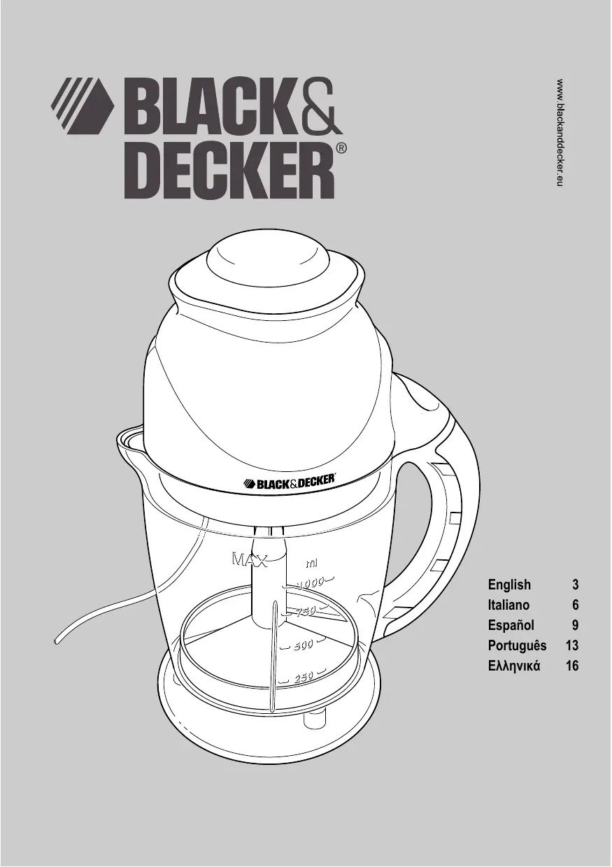 Para consultar la dirección del servicio técnico más cercano, póngase en contacto con la oficina local de Black & Decker en la dirección que se indica en este manual. Como alternativa, se puede consultar en Internet, en la dirección siguiente, la lista de servicios técnicos autorizados e información completa sobre nuestros servicios de posventa y contactos: www.2helpU.com. Características técnicas Voltaje X El producto se haya sometido a un uso inadecuado o negligente. X El producto haya sufrido daños causados por objetos o sustancias extrañas o accidentes. X Se hayan realizado reparaciones por parte de personas que no sean del servicio técnico autorizado o personal de servicios de Black & Decker. Para reclamar en garantía, será necesario que presente la prueba de compra al vendedor o al servicio técnico de reparaciones autorizado. Pueden consultar la dirección de su servicio técnico más cercano poniéndose en contacto con la oficina local de Black & Decker en la dirección que se indica en este manual. Como alternativa, se puede consultar en Internet, en la dirección siguiente, la lista de servicios técnicos autorizados e información completa de nuestros servicios de postventa y contactos: www.2helpU.com