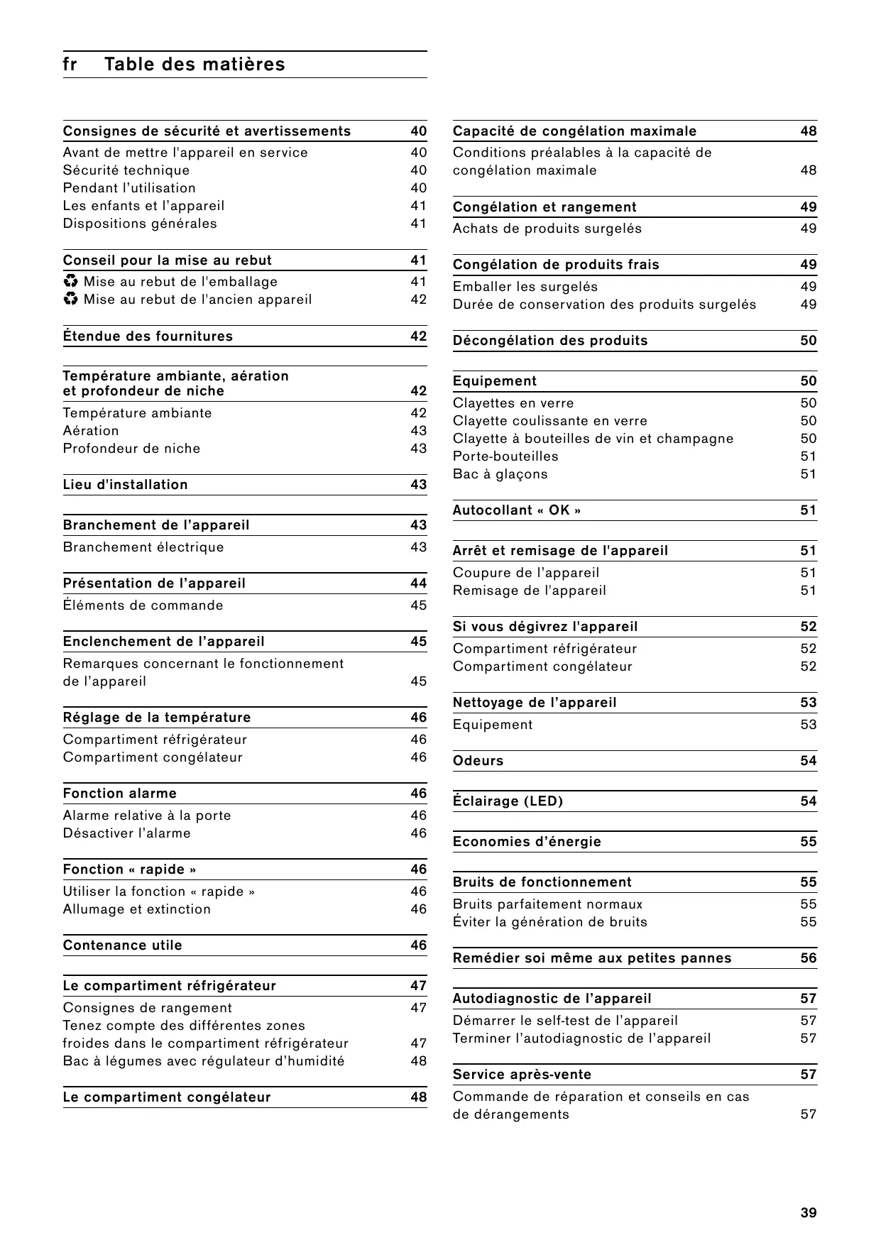 Avant de mettre l'appareil en service 40