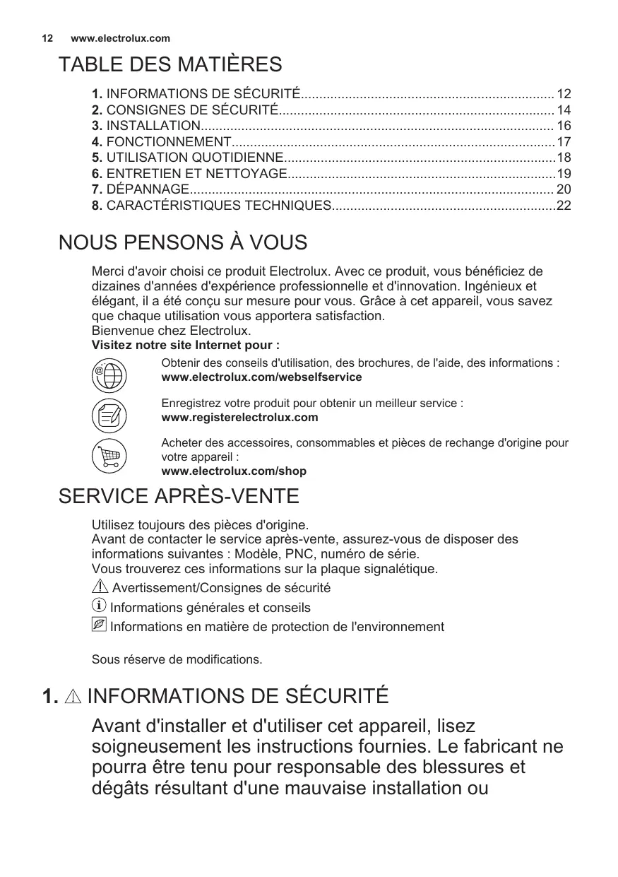INFORMATIONS DE SÉCURITÉ