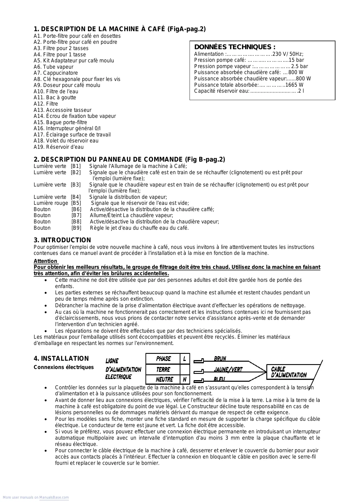 1. DESCRIPTION DE LA MACHINE À CAFÉ (FigA-pag.2)