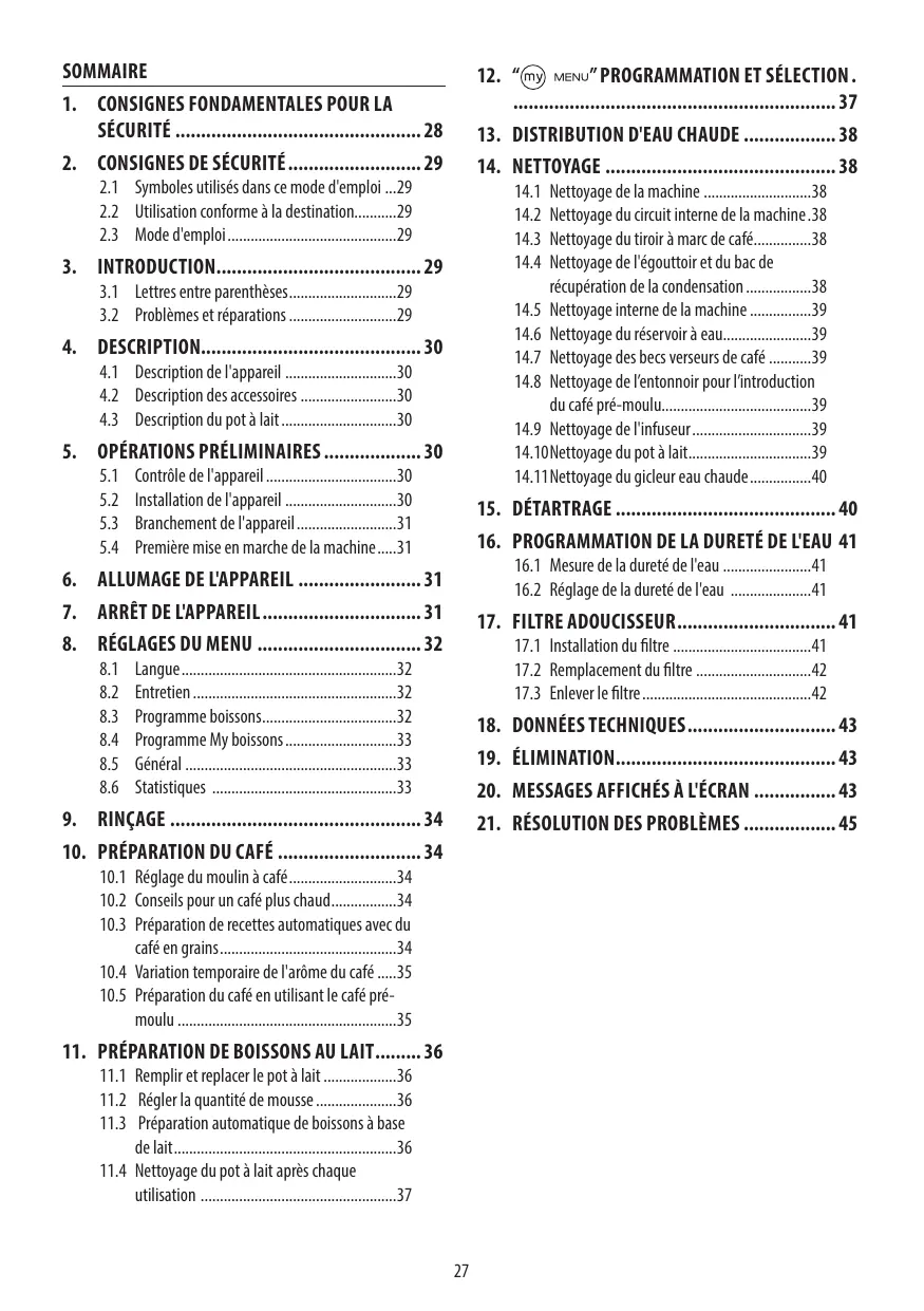 Fonctions principales Préparation de café, espresso, cappuccino, latte macchiato, mousse de lait