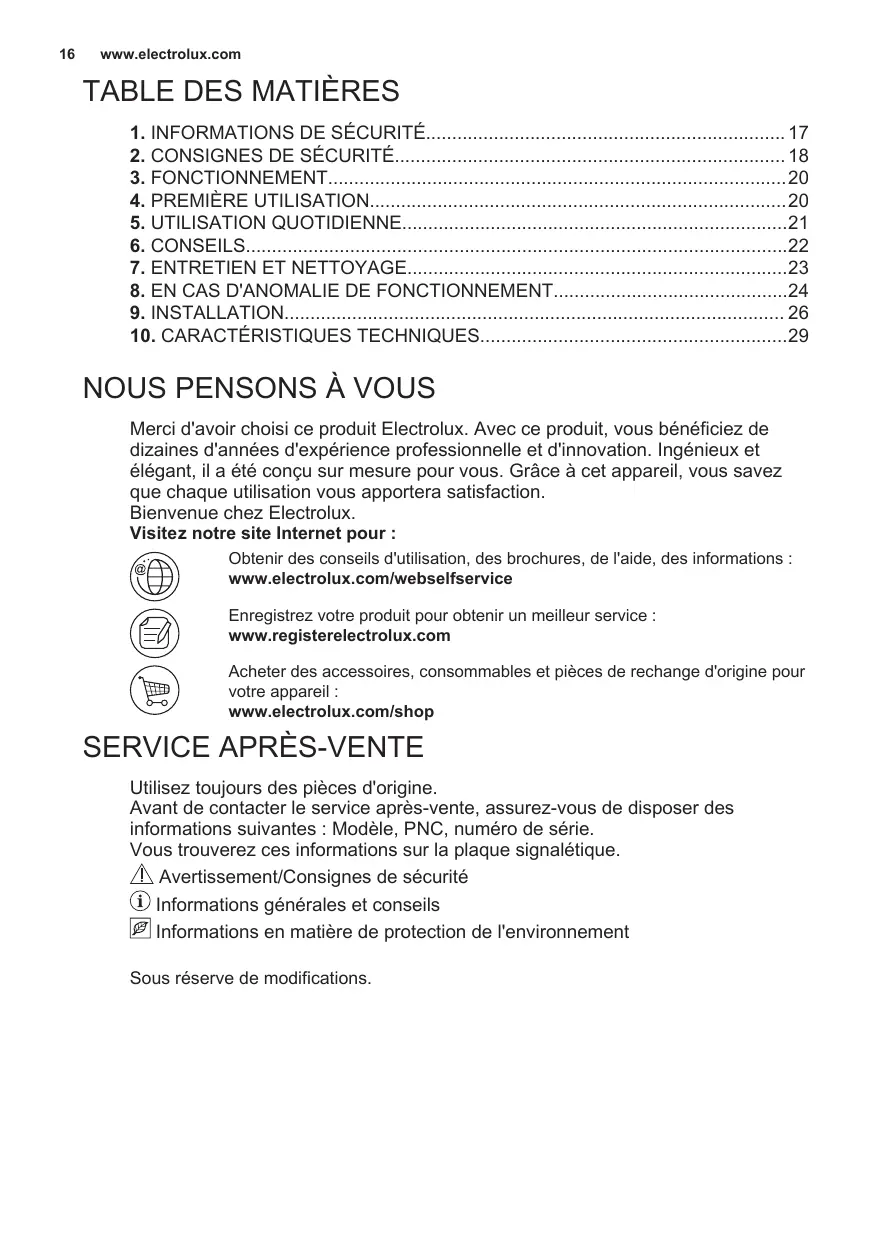 FOIRE AUX QUESTIONS - ERT1601AOW3 ELECTROLUX