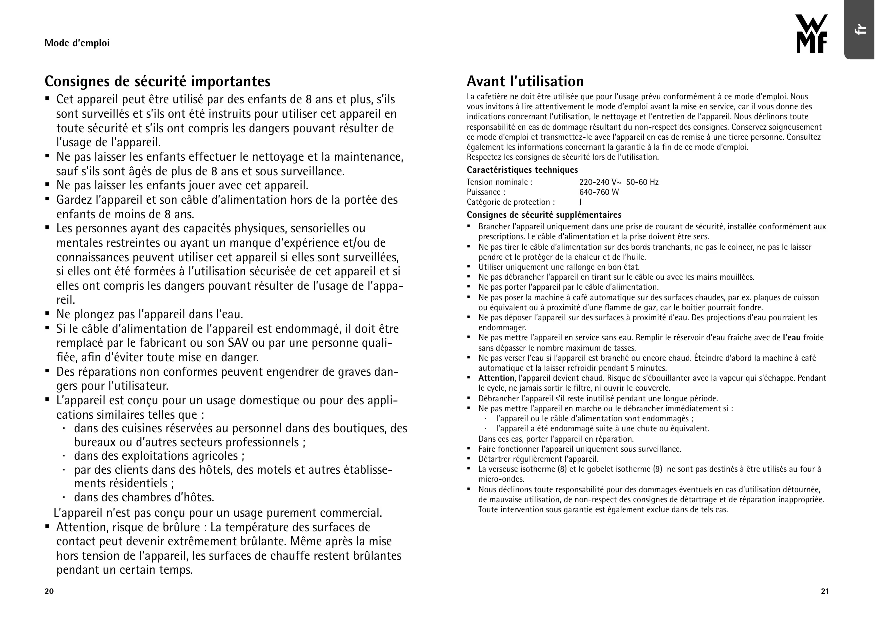 Retrouvez gratuitement la notice de l'appareil KITCHENMINIS AROMA THERMO TO GO WMF au format PDF.