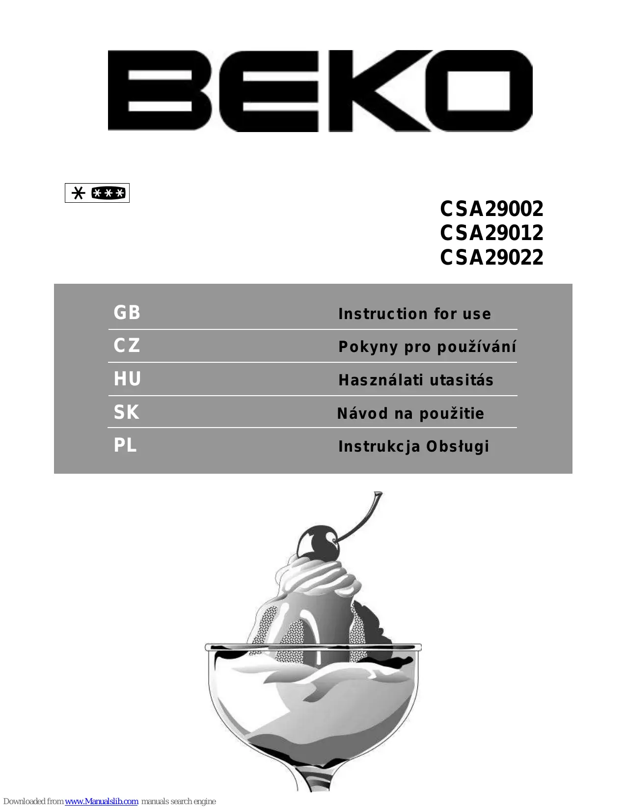 CSA29020 - Réfrigérateur combiné BEKO - Notice d'utilisation et mode d'emploi gratuit