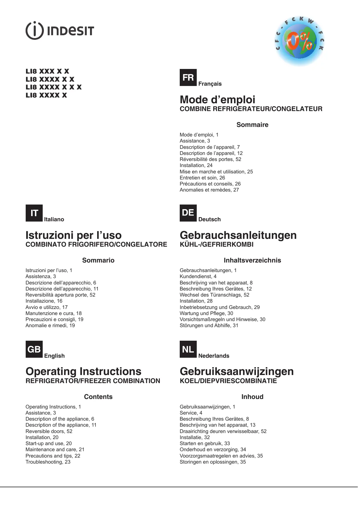 Téléchargez la notice de votre Réfrigérateur combiné au format PDF gratuitement ! Retrouvez votre notice LI80FF2SB - INDESIT et reprennez votre appareil électronique en main. Sur cette page sont publiés tous les documents nécessaires à l'utilisation de votre appareil LI80FF2SB de la marque INDESIT.