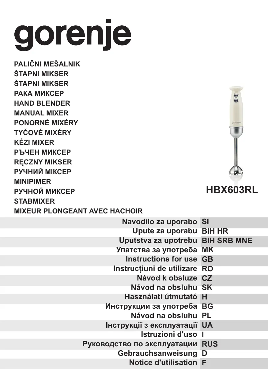 HBX603RL - Mixeur plongeant GORENJE - Notice d'utilisation et mode d'emploi gratuit