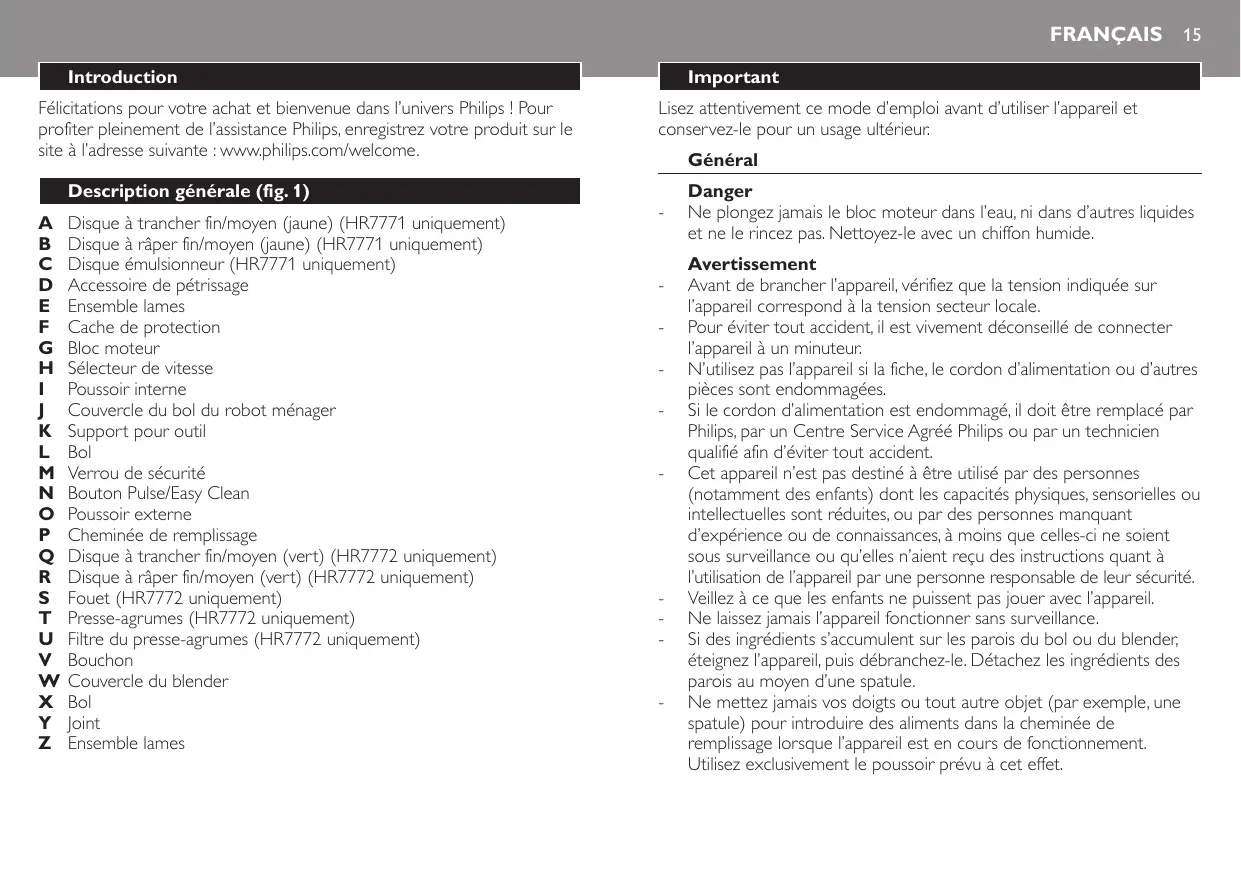 HR7771/53 - Robot de cuisine PHILIPS - Notice d'utilisation et mode d'emploi gratuit