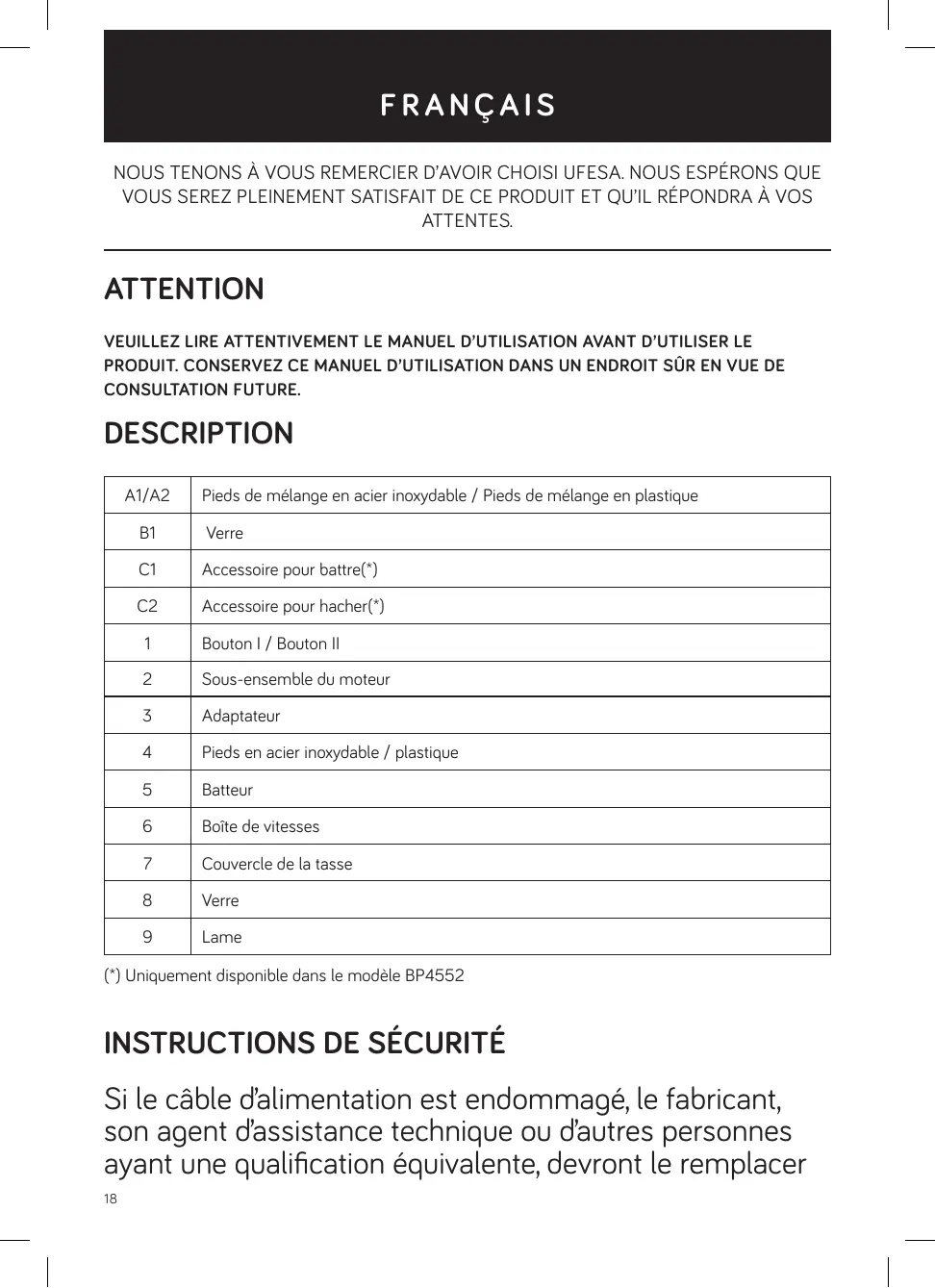 BP4552 - UFESA - Notice d'utilisation et mode d'emploi gratuit