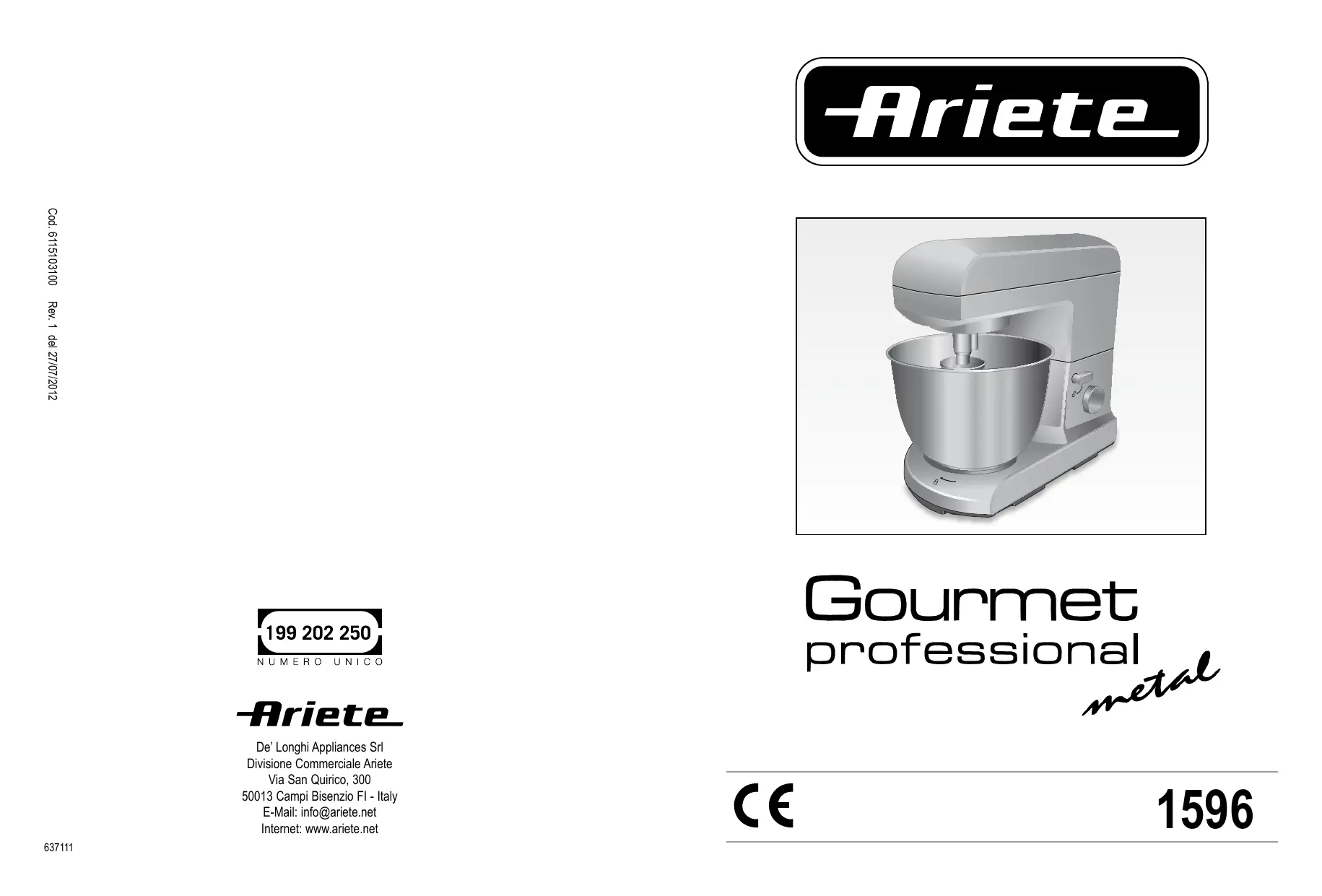 1596 - 00C159600AR0 - 1598 - ARIETE - Notice d'utilisation et mode d'emploi gratuit