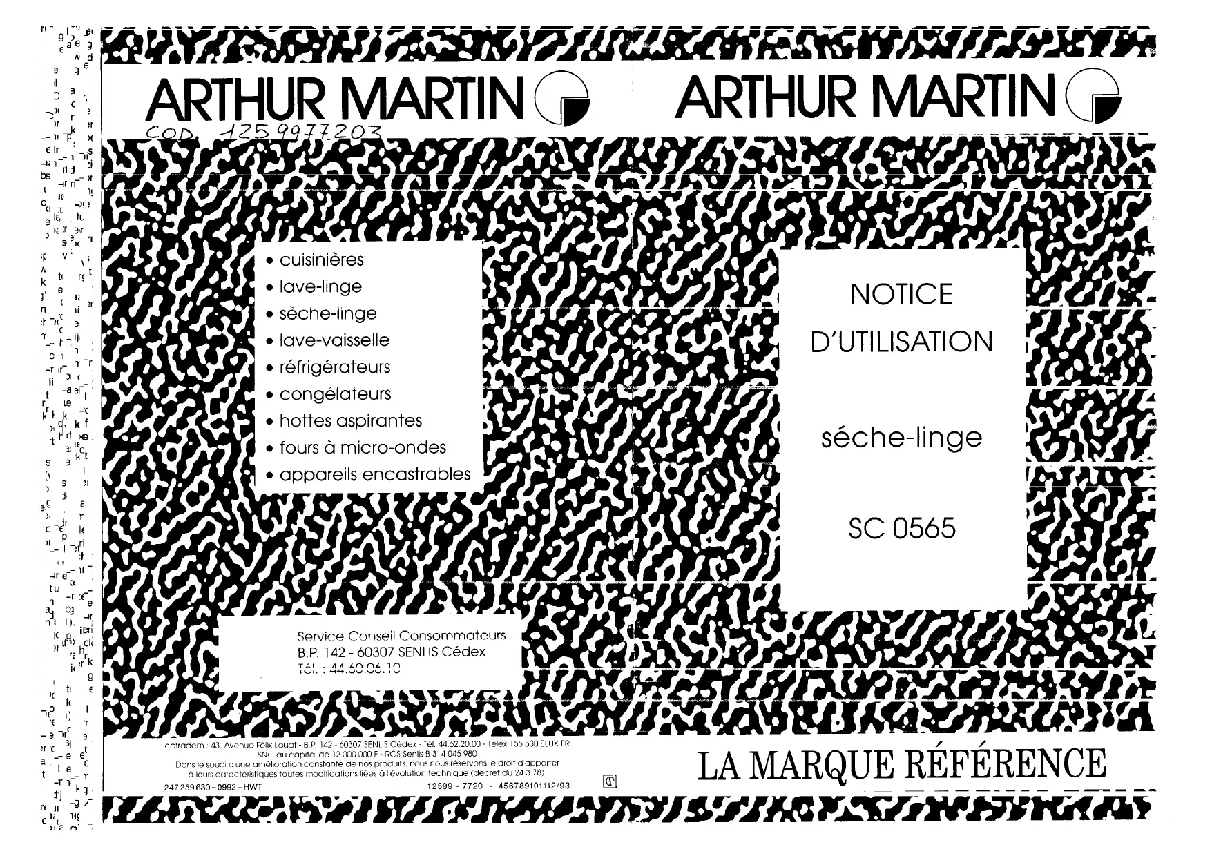 SC 0565 - ARTHUR MARTIN - Notice d'utilisation et mode d'emploi gratuit