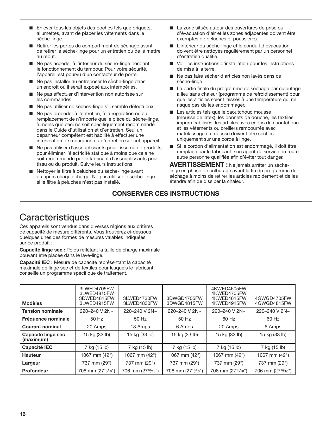 m Lire toutes les instructions avant d'utiliser le sèche-linge. m Si l'on doit faire sécher dans le sèche-linge des articles