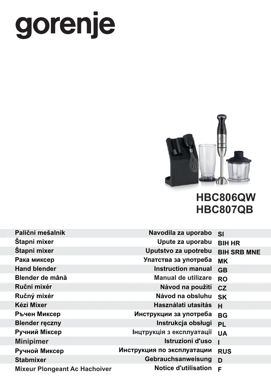 Retrouvez gratuitement la notice de l'appareil HBC807QB GORENJE au format PDF.