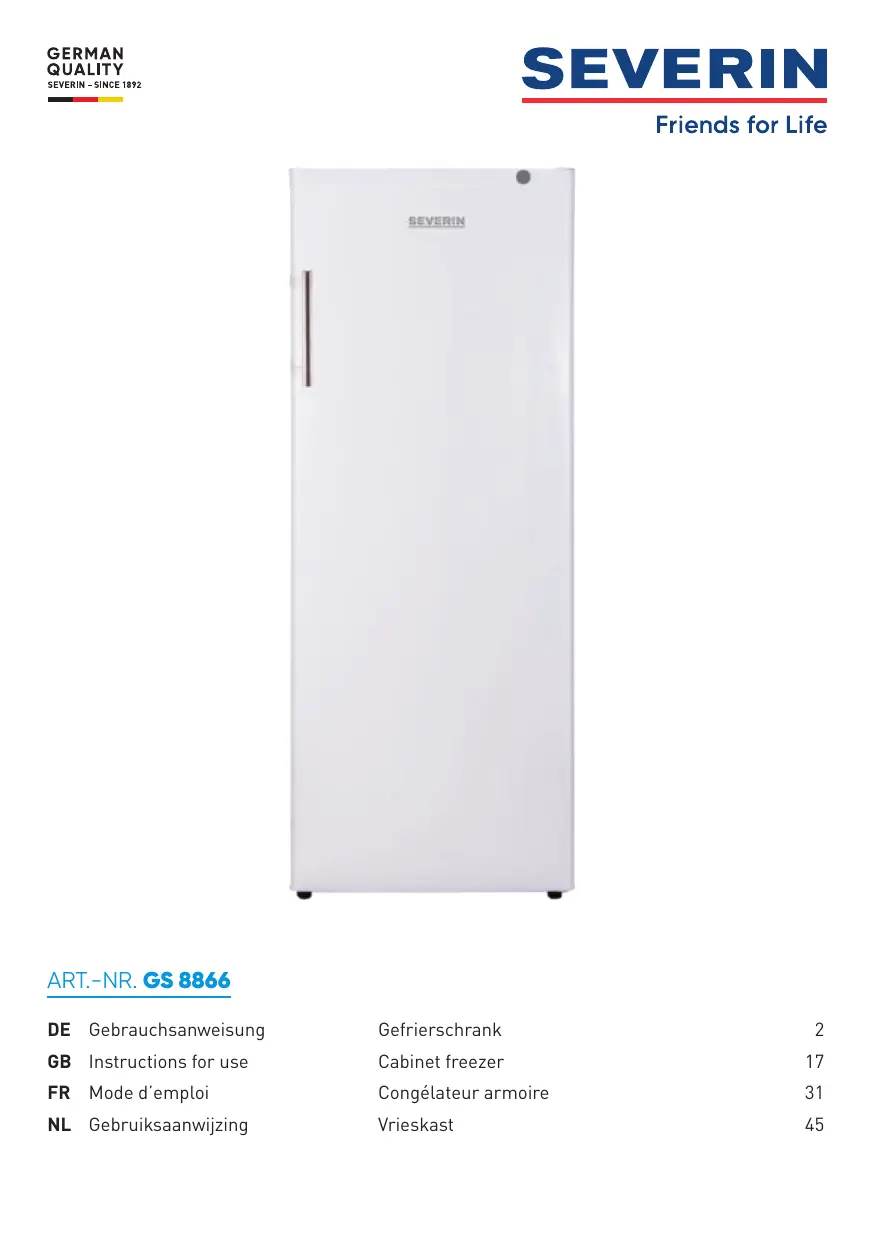 Retrouvez gratuitement la notice de l'appareil GS 8866 SEVERIN au format PDF.