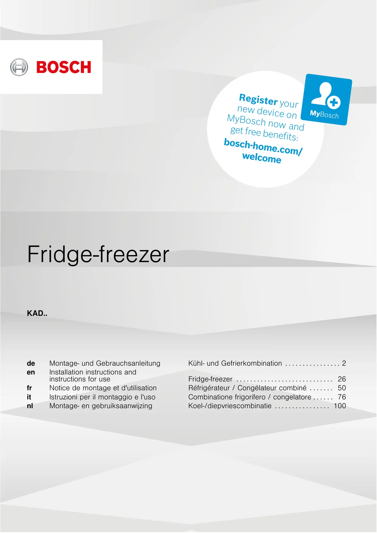 Retrouvez gratuitement la notice de l'appareil KAD93VIFP - KAD93VIFP-B BOSCH au format PDF.