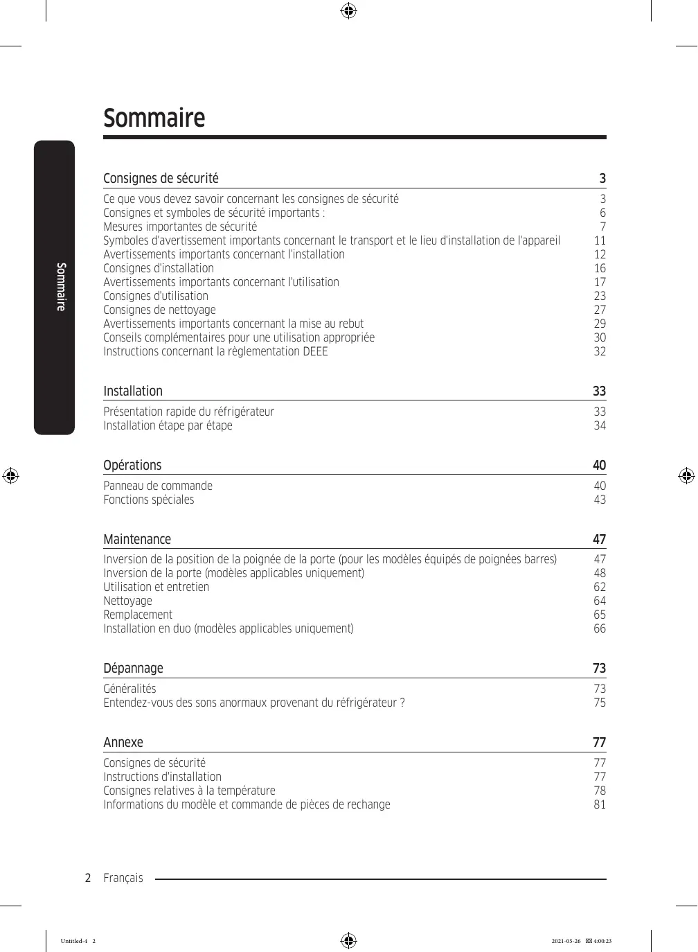 Avant d'utiliser votre nouveau réfrigérateur Samsung, veuillez tire attentivement ce manuel afin de vous assurer que vous savez comment utiliser de manière sure et efficace ses différentes fonctions et fonctionnalités.