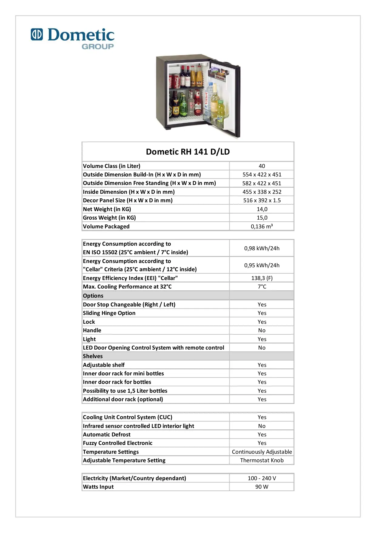 Retrouvez gratuitement la notice de l'appareil RH 141 LD DOMETIC au format PDF.