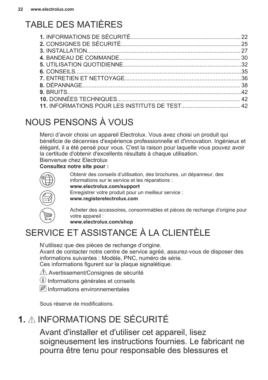 élégant, il a été pensé pour vous. C'est la raison pour laquelle vous pouvez avoir la certitude d'obtenir d'excellents résultats à chaque utilisation. Bienvenue chez Electrolux Consultez notre site pour :