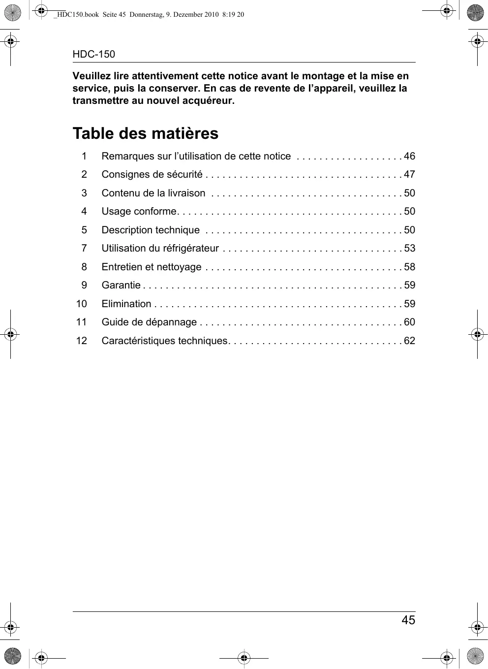 Remarques sur l’utilisation de cette notice . . . . . . . . . . . . . . . . . . . 46