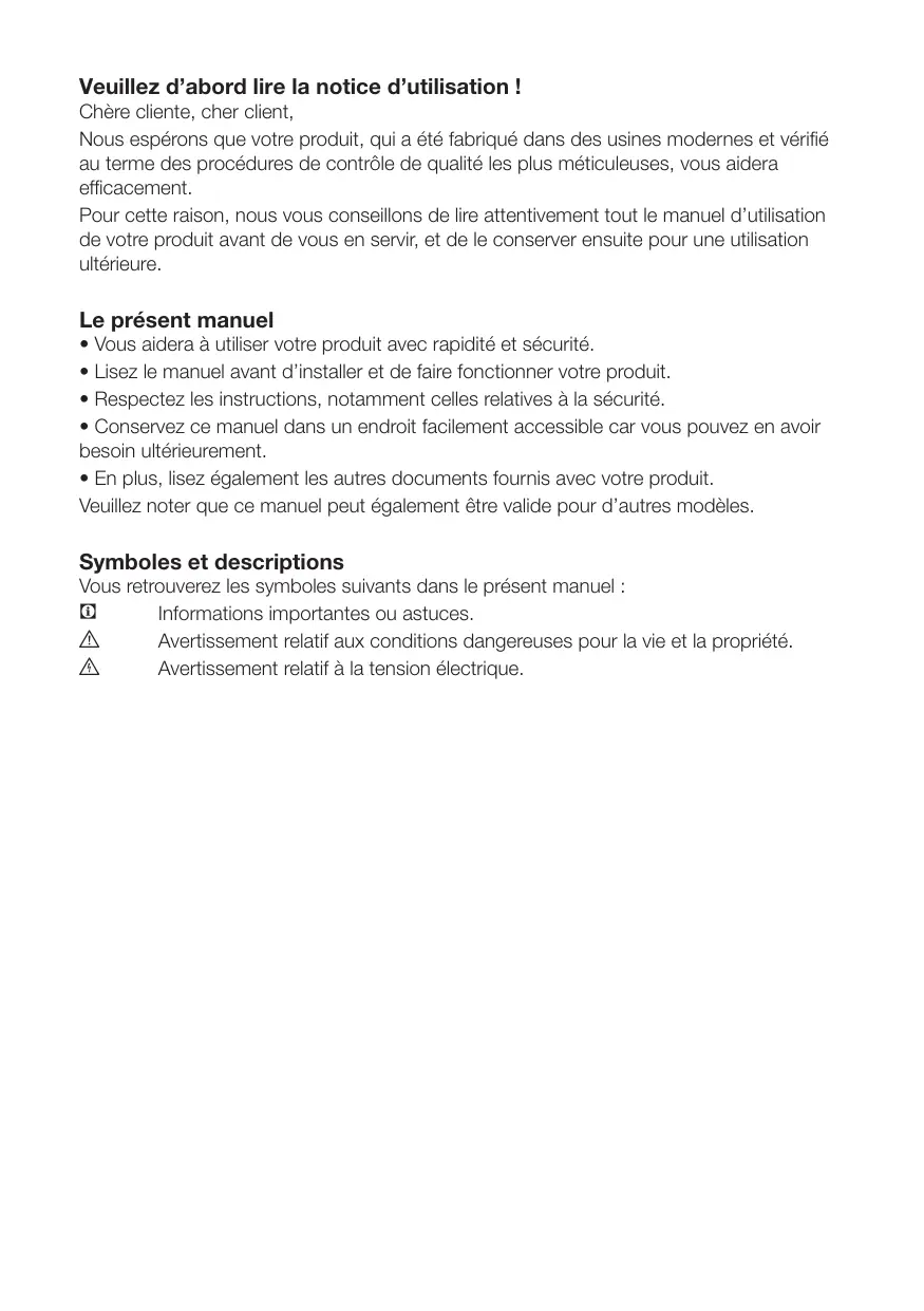 | Entretien et nettoyage | Nettoyage intérieur avec un chiffon humide, pas de produits abrasifs |