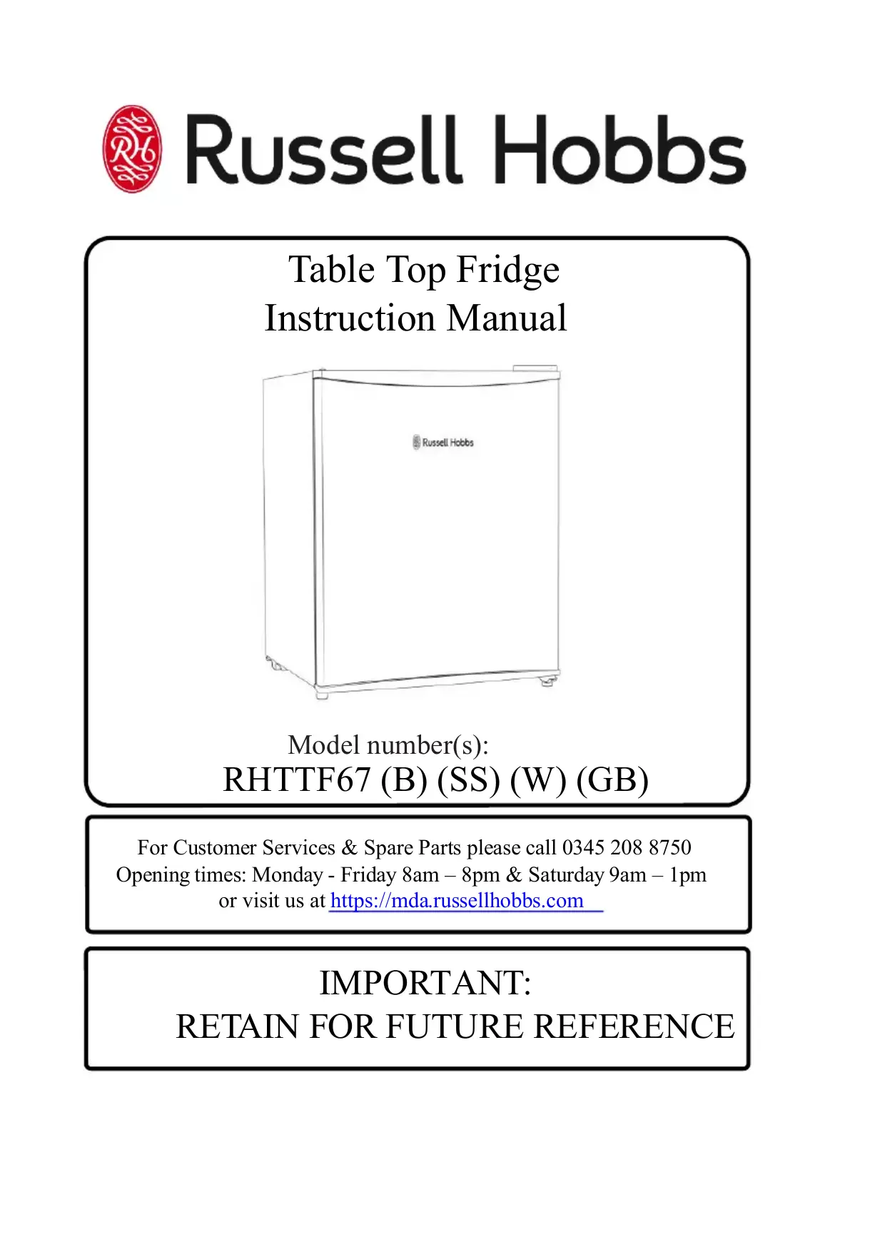 Retrouvez gratuitement la notice de l'appareil RHTTF67 RUSSELL HOBBS au format PDF.