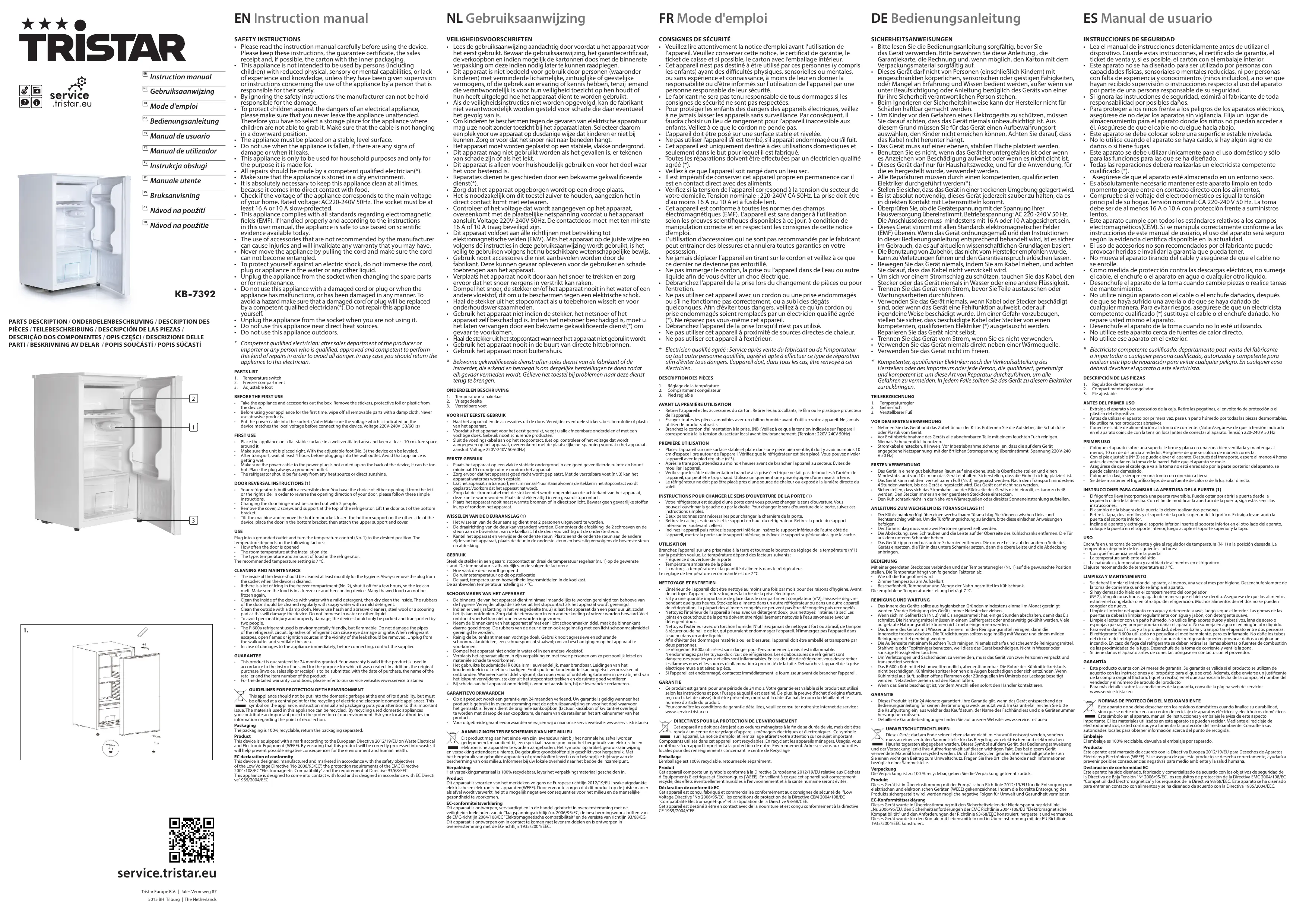 Retrouvez gratuitement la notice de l'appareil KB-7392 TRISTAR au format PDF.