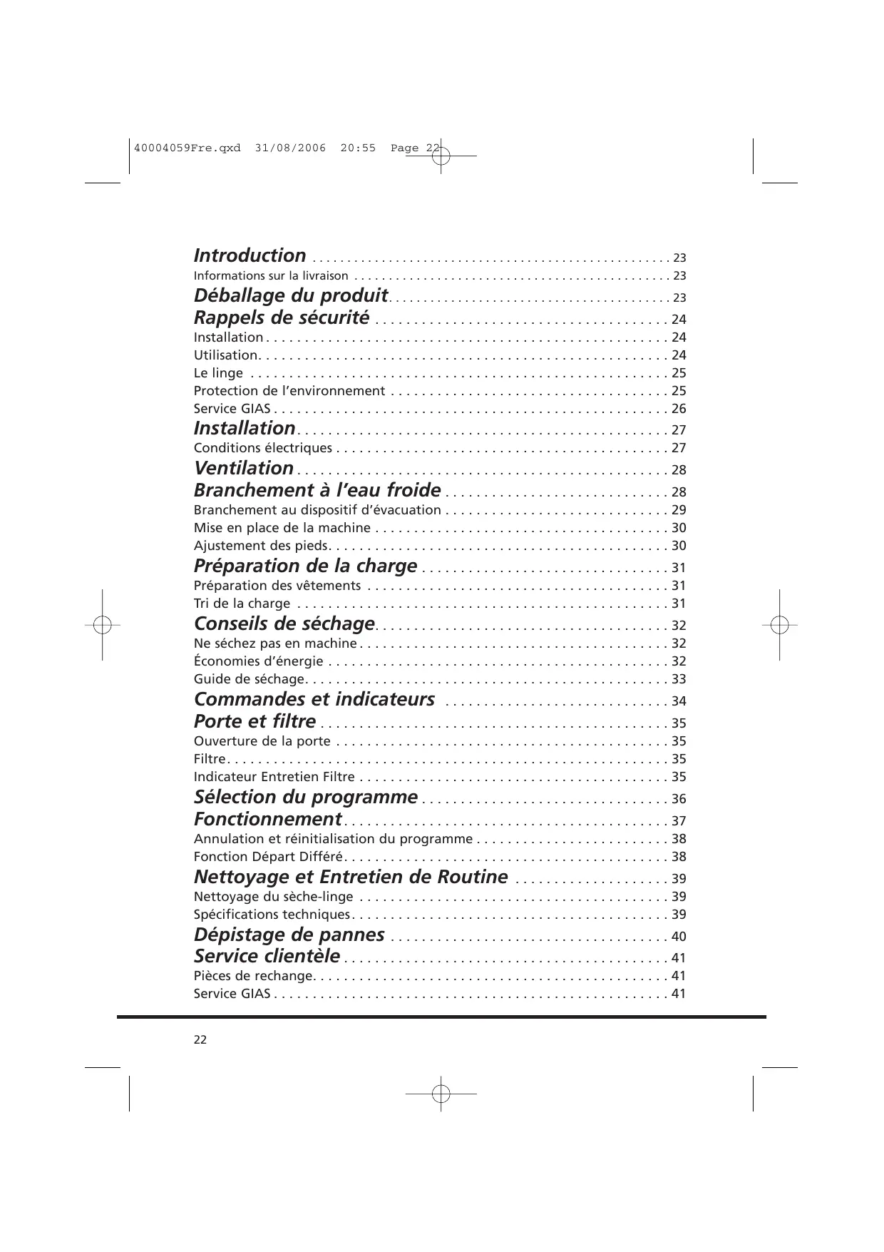 - Nettoyage du sèche-linge p. 39