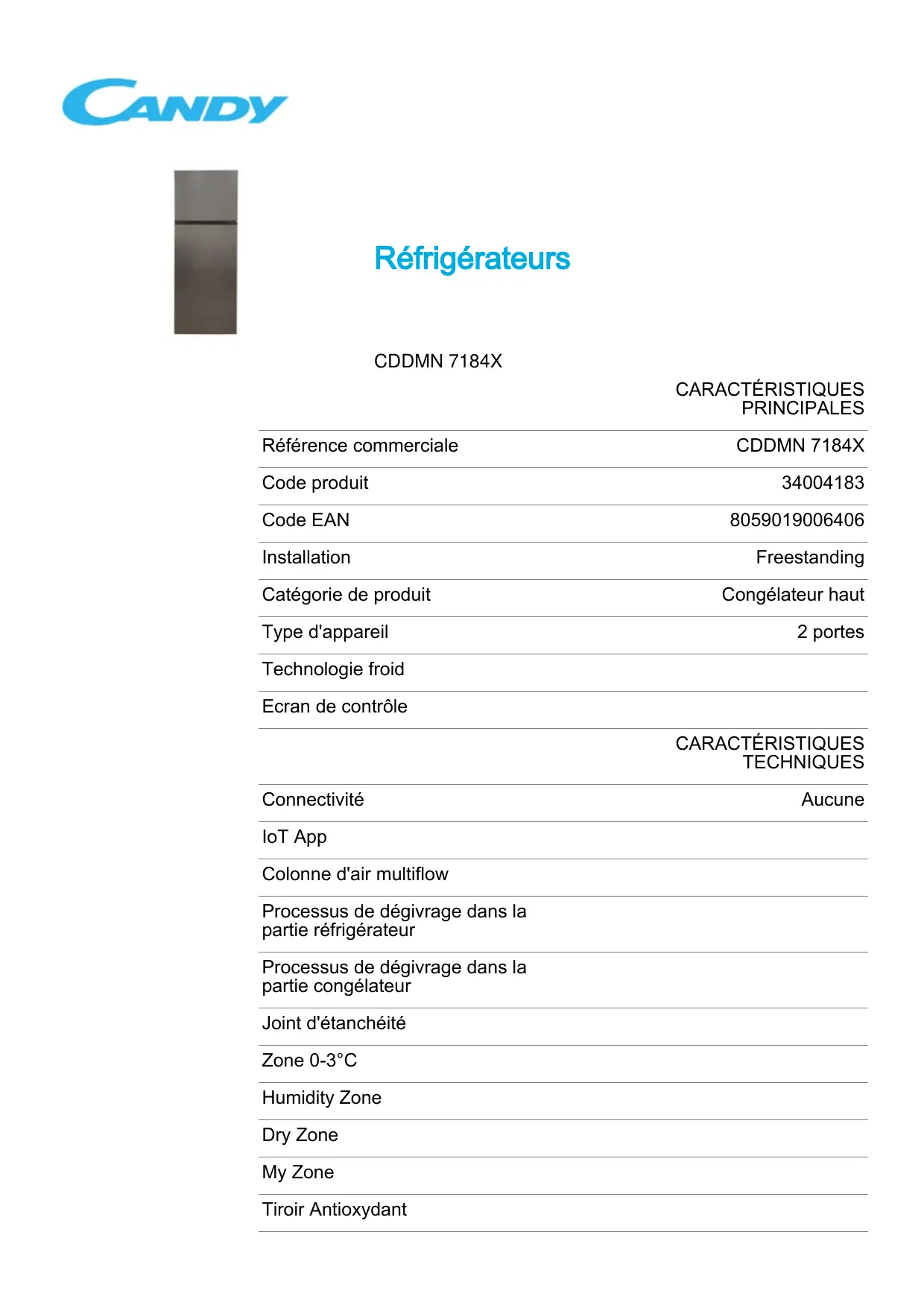 CDDMN 7184X - 34004183 - CANDY - Notice d'utilisation et mode d'emploi gratuit