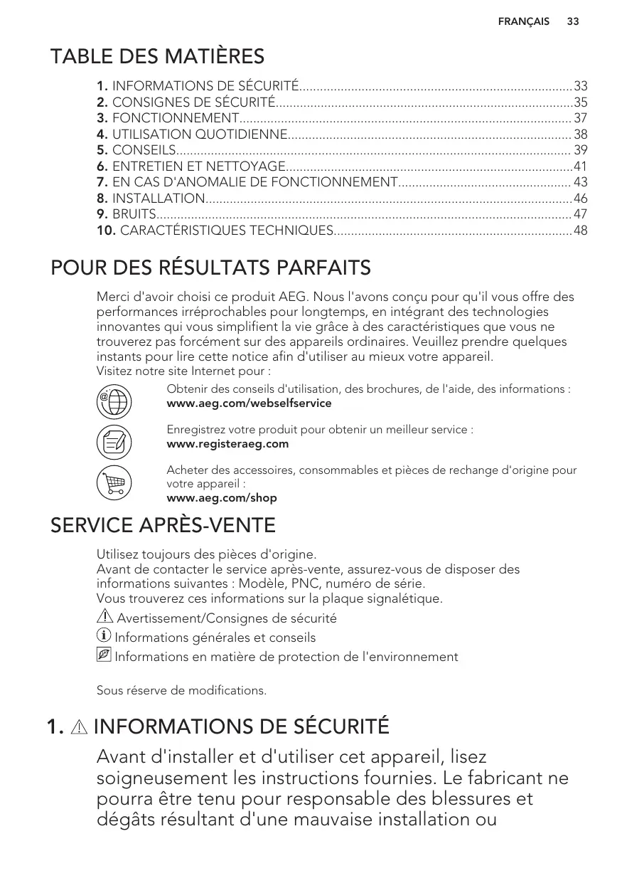 INFORMATIONS DE SÉCURITÉ