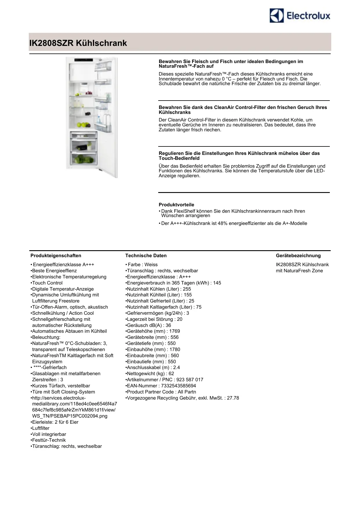 IK2808SZR - 923 587 017 - ELECTROLUX - Notice d'utilisation et mode d'emploi gratuit