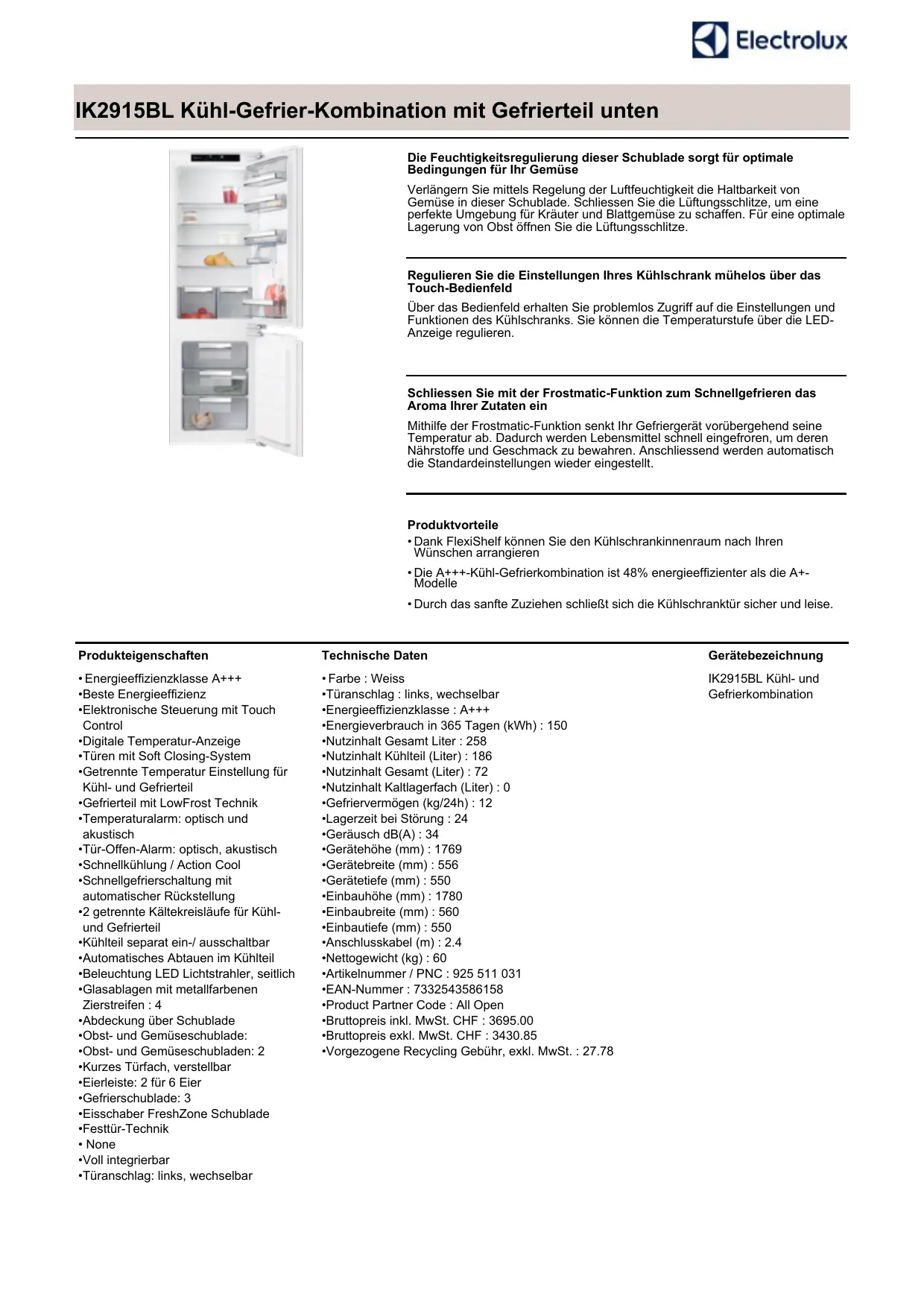 IK2915BL - 925 511 031 - ELECTROLUX - Notice d'utilisation et mode d'emploi gratuit