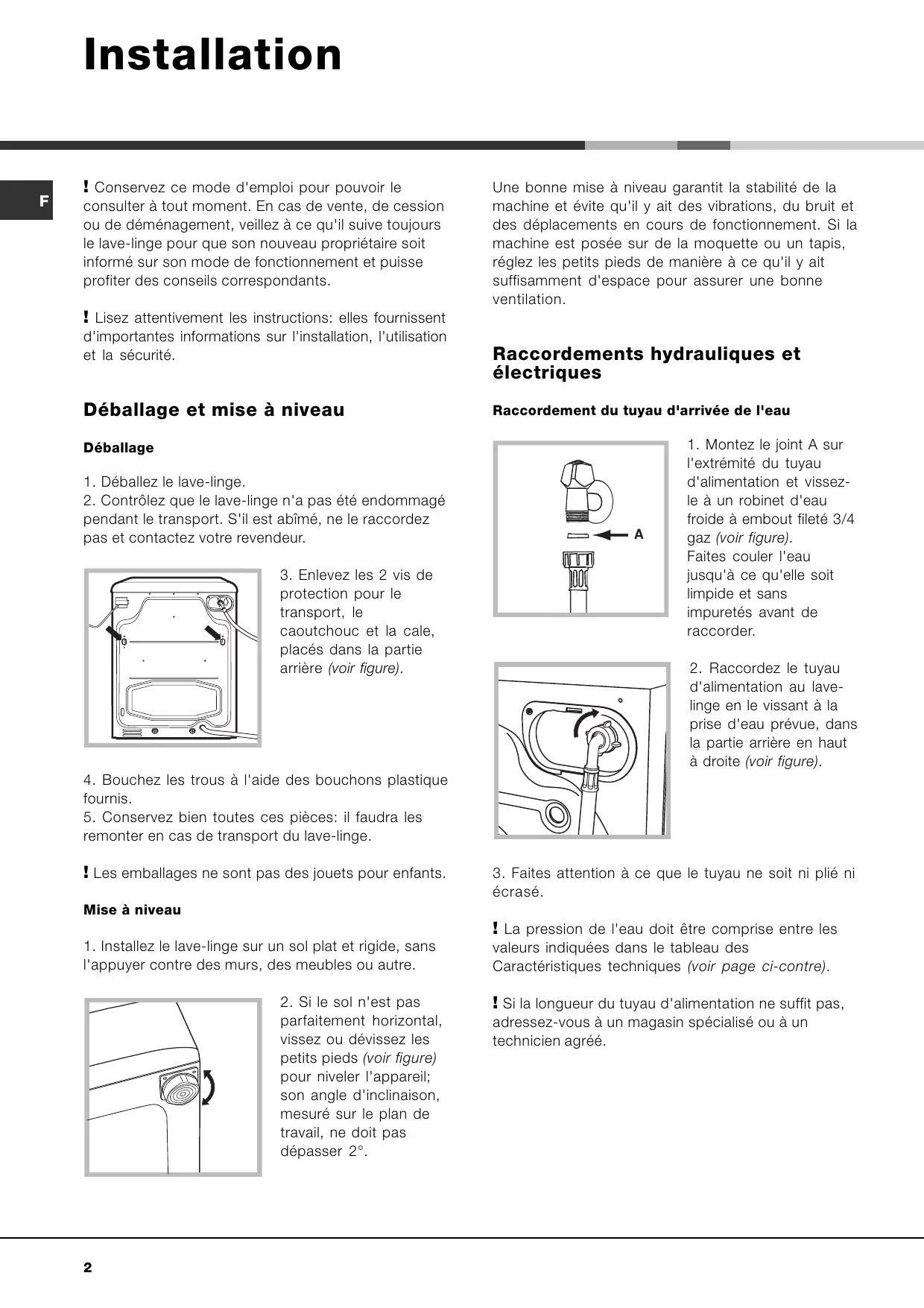 Caractéristiques techniques (voir page ci-contre). Si la longueur du tuyau d'alimentation ne suffit pas, adressez-vous à un magasin spécialisé ou à un technicien agréé.