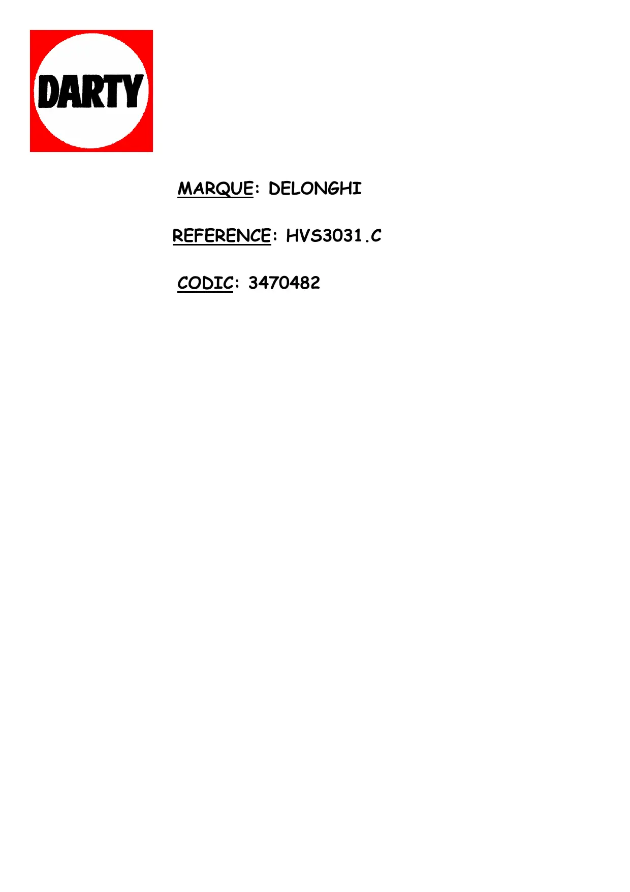 HVS3031.C - DELONGHI - Notice d'utilisation et mode d'emploi gratuit