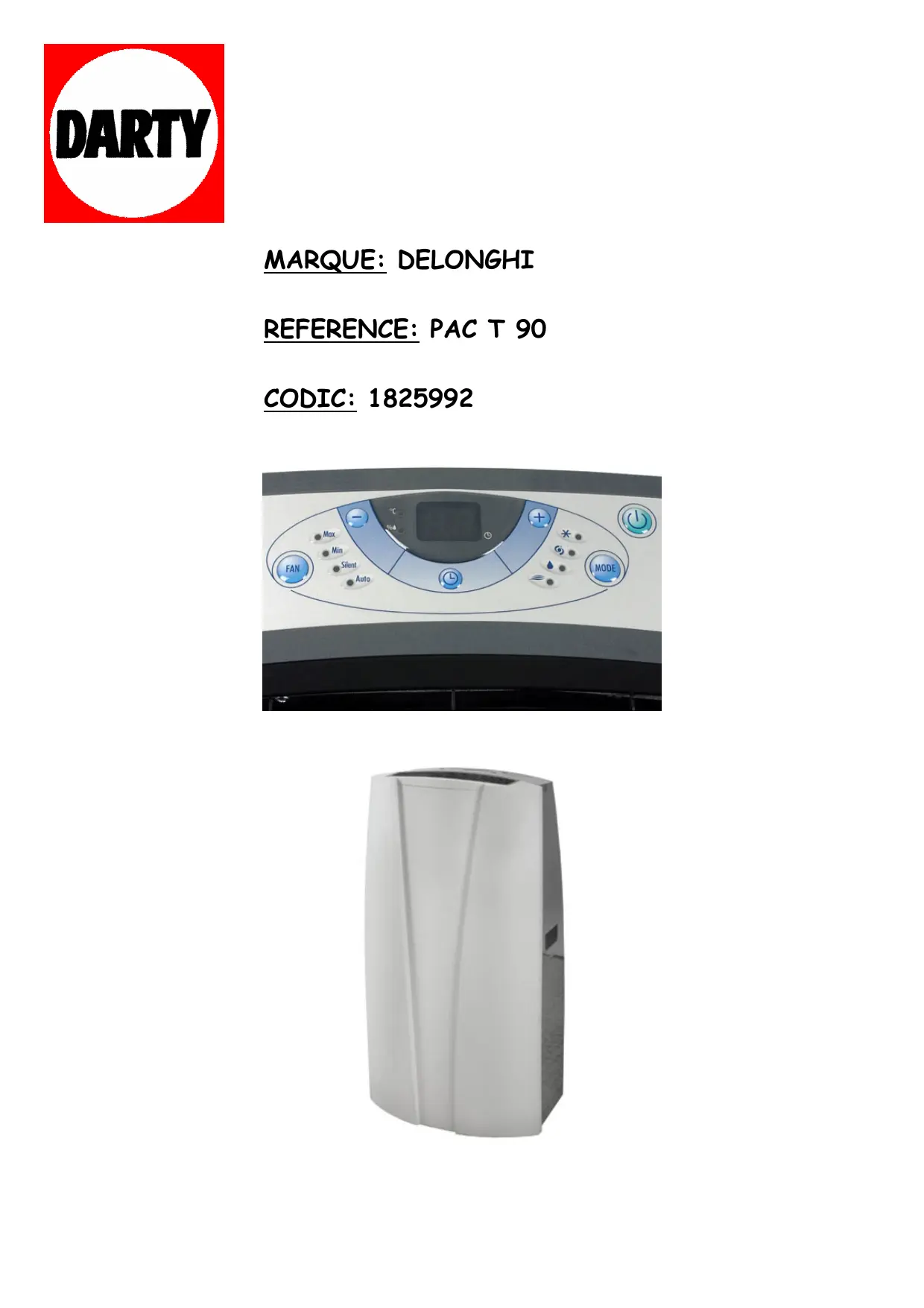 PAC T 90 - DELONGHI - Notice d'utilisation et mode d'emploi gratuit