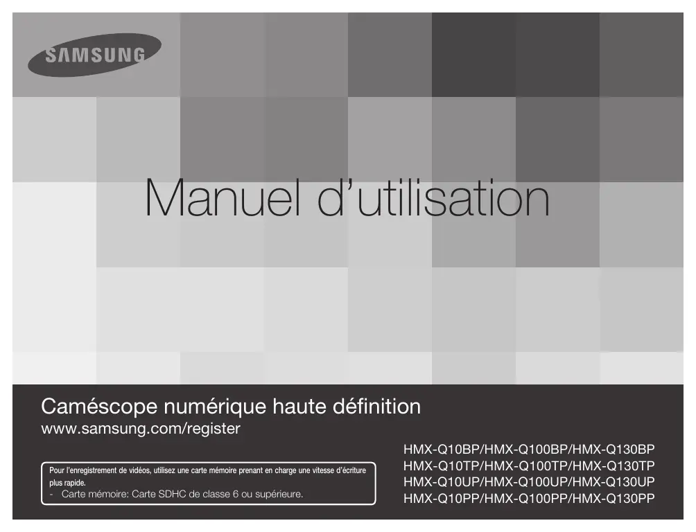 Retrouvez gratuitement la notice de l'appareil HMX-Q10BP SAMSUNG au format PDF.