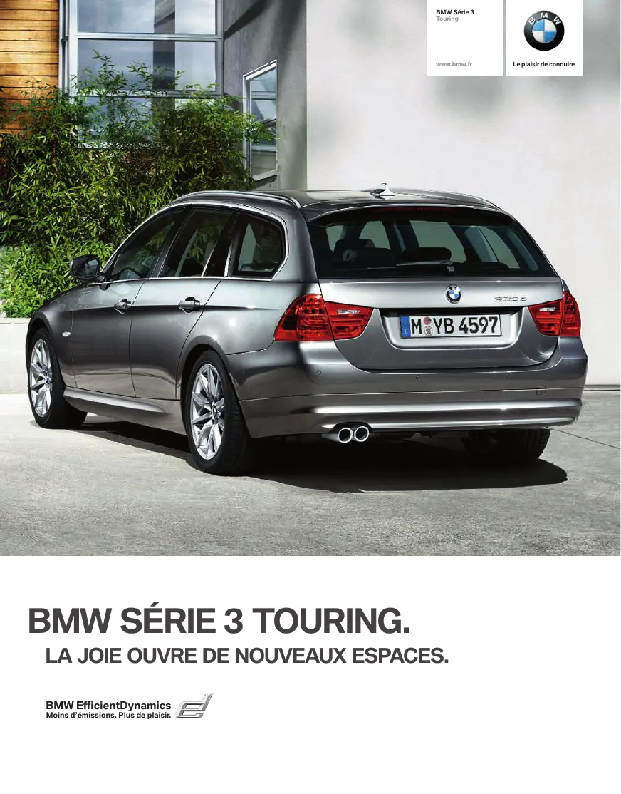 Sommaire BMW Série 3 Touring 04117 Extérieur 18125 Intérieur Technique | BMW EfficientDynamics 26127 BMW EficientDynamics 28131 Moteurs 32133 Direction active AFS | Sécurité 34135 xDrive 36137 BMW ConnectedDrive 38139 Sécurité Équipements 40143 Teintes et gamissages 44145 Exemples de configurations 46161 Équipements de série 1 en option 62163 Caractéristiques techniques 64167 Accessoires d'Origine BMW 1 BMW Individual 68169 Senice BMW C'estinteraction de ses qualités qui rend une automobile parfaite. Dans le cas de la BMW Série 3 Touring dotée des mesures BMW EfficientDynamies, elles donnent naissance à un ensemble des plus raffinés quivous séduira d'emblée. Admirez son allure sportive et souveraine. Laissez-vous inspirer parle jeu élégant des lignes et une pohvalence qui répond à vos besoins de liberté. Découvrez jour après jour, un dynamisme et une efficacité qui redéfinissent les références. Équipement du modle présenté Moteur: Si cyidres en gne Diesel Puissance: 245 ch 180) Jantes: En allge léger 17" (43 om) iyl288 rayons en éole Tente decarossais: Spacagrau” matalisé ages: Our Daiot Satebraun» BMW330d Touring Ines décors Aumnuminement brossé Vous outerez de lu ages nformtins url consommations de carburant ties émesion de CO, a pages 63.