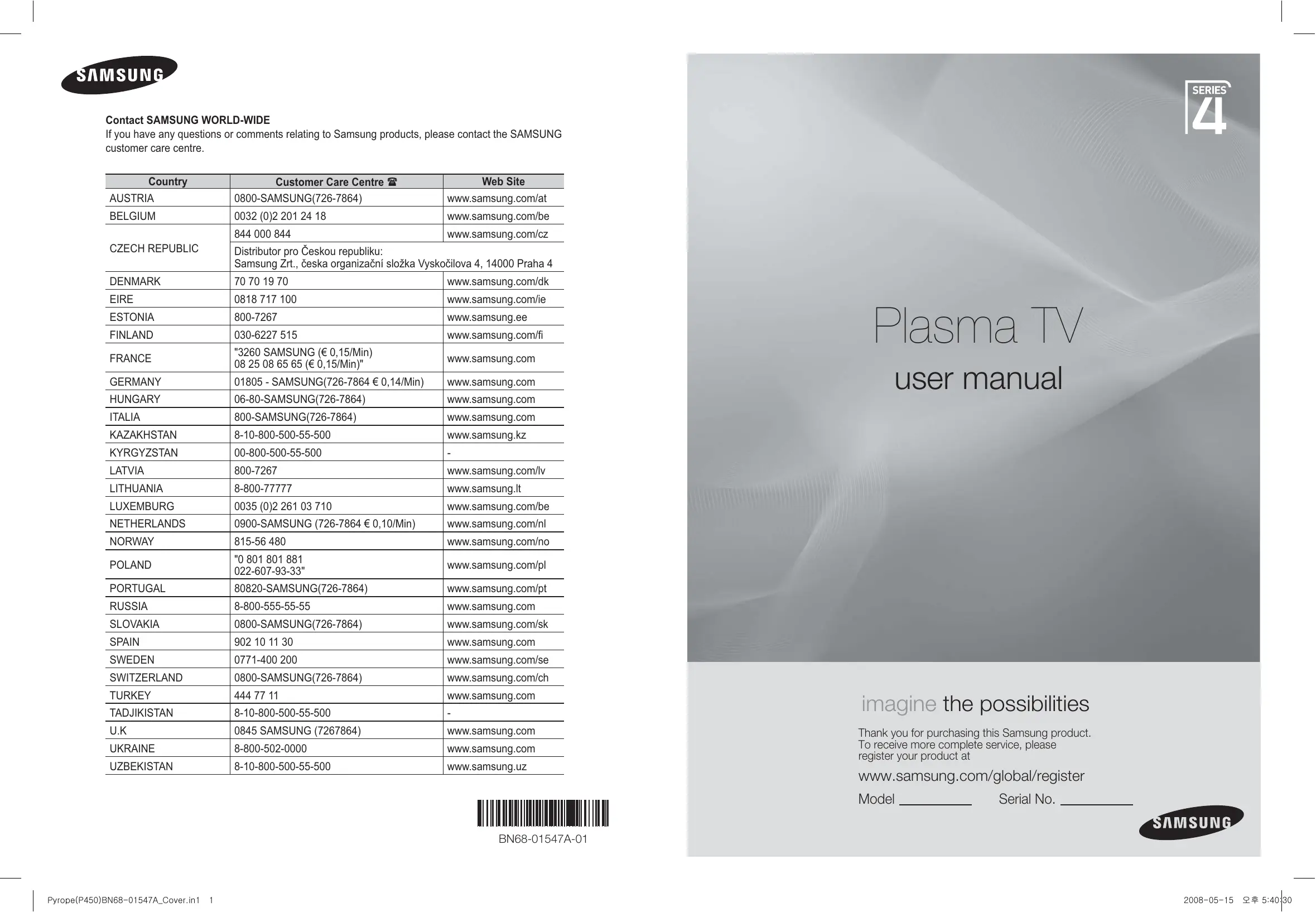 Retrouvez gratuitement la notice de l'appareil PS50A467P1W SAMSUNG au format PDF.
