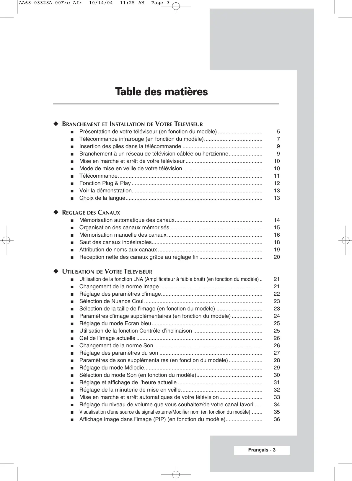 AA68-03328A-00Fre_Afr 10/14/04 3:29 PM Page 5 Présentation de votre téléviseur (en fonction du modèle)