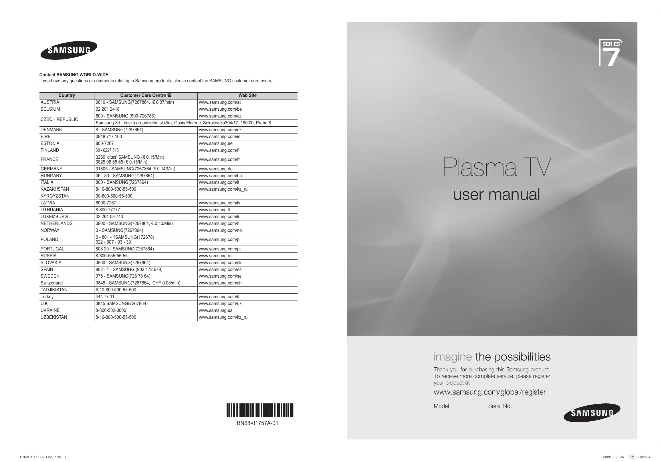 Téléchargez la notice de votre Téléviseur au format PDF gratuitement ! Retrouvez votre notice PS50A756 - SAMSUNG et reprennez votre appareil électronique en main. Sur cette page sont publiés tous les documents nécessaires à l'utilisation de votre appareil PS50A756 de la marque SAMSUNG.