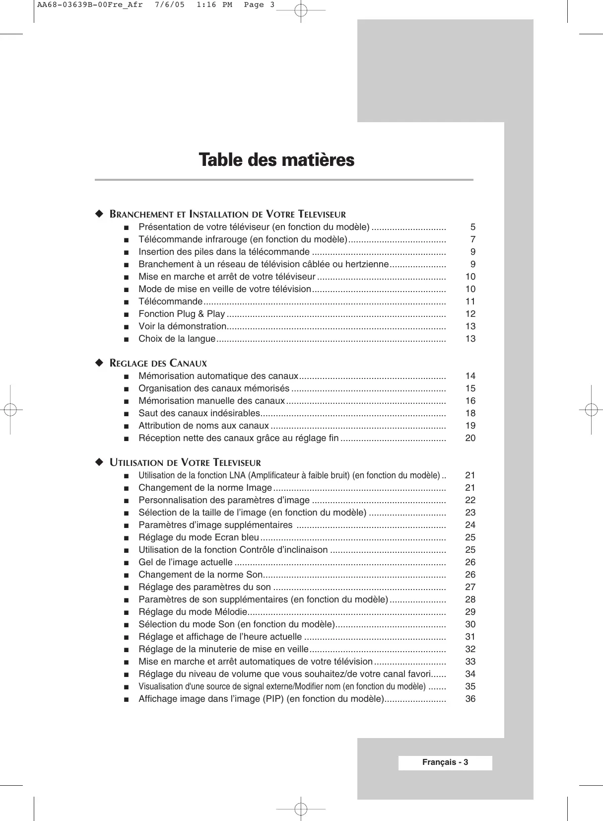 AA68-03639B-00Fre_Afr 7/6/05 1:16 PM Page 5 Présentation de votre téléviseur (en fonction du modèle)