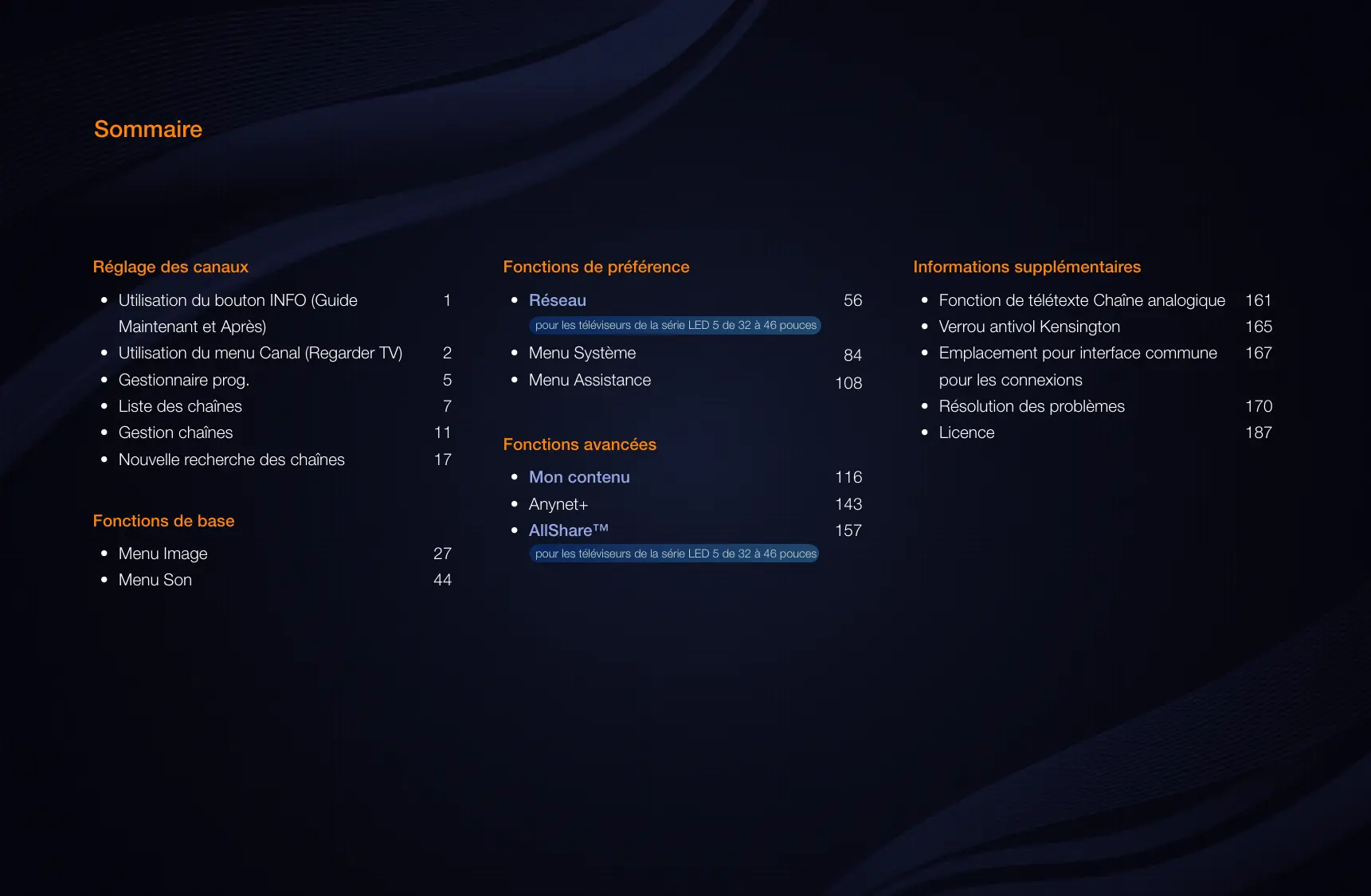 pour les téléviseurs de la série LED 5 de 32 à 46 pouces