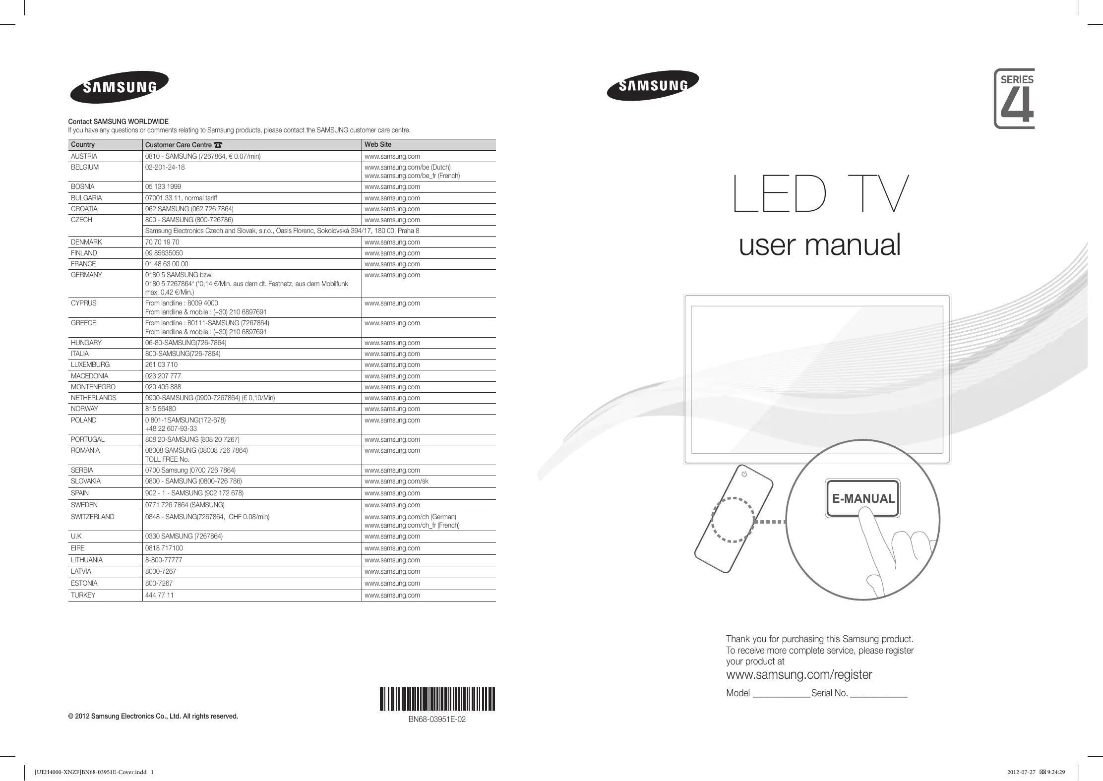 Retrouvez gratuitement la notice de l'appareil UE32EH4003 SAMSUNG au format PDF.